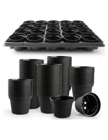 Maceta redonda negra de 3 pulgadas 100pcs y bandeja de macetas de 20 celdas 5 paquete