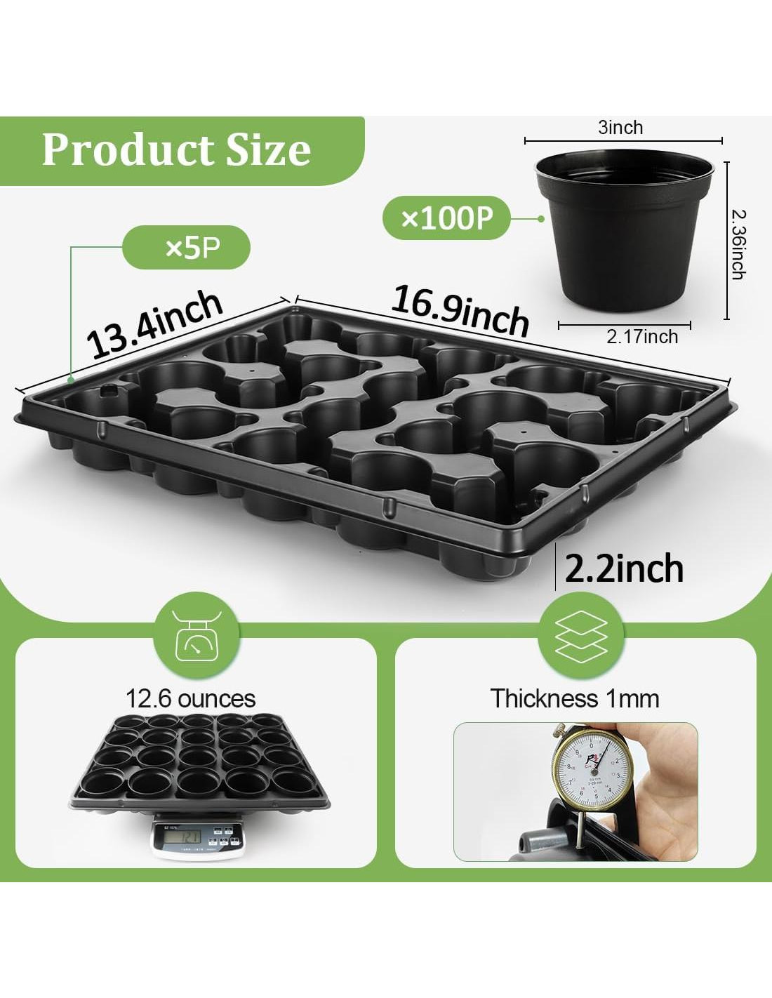 - Tamaño: Macetas de 3 Pulgadas 100 Paquete con 5 Paquete de Bandejas
