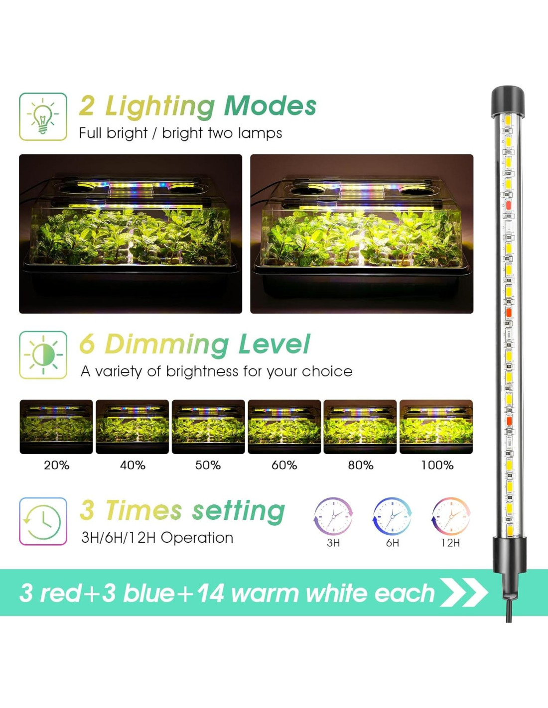 - [Luz de Crecimiento Ajustable]-El éxito de la jardinería interior depende de las luces de crecimiento que imitan de cerca la luz solar para activar la fotosíntesis. Nuestras luces LED espectrales vienen con un interruptor que las hace utilizables para diferentes etapas. Y la luz para plántulas interior ofrece la función de temporizador de memoria circular con 3 opciones-3h/6h/12h.