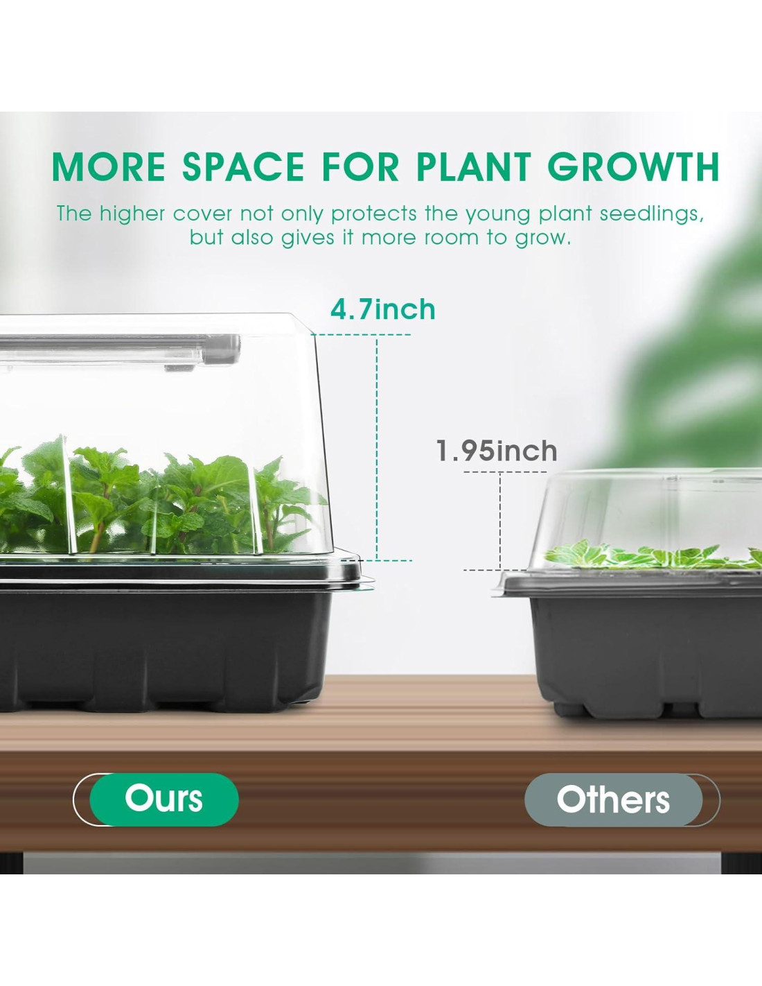 - [Perfecto para el Crecimiento de Semillas]-Nuestro kit de inicio de plantas tiene ventilaciones circulares ajustables, puedes ajustar fácilmente la humedad y temperatura interna al girar el regulador para acomodar diferentes etapas del crecimiento de la semilla a la plántula. Los agujeros de drenaje en la parte inferior de la bandeja de inicio de semillas con domo también ayudan a mantener un mejor nivel de humedad en el suelo, por lo que más semillas germinan.