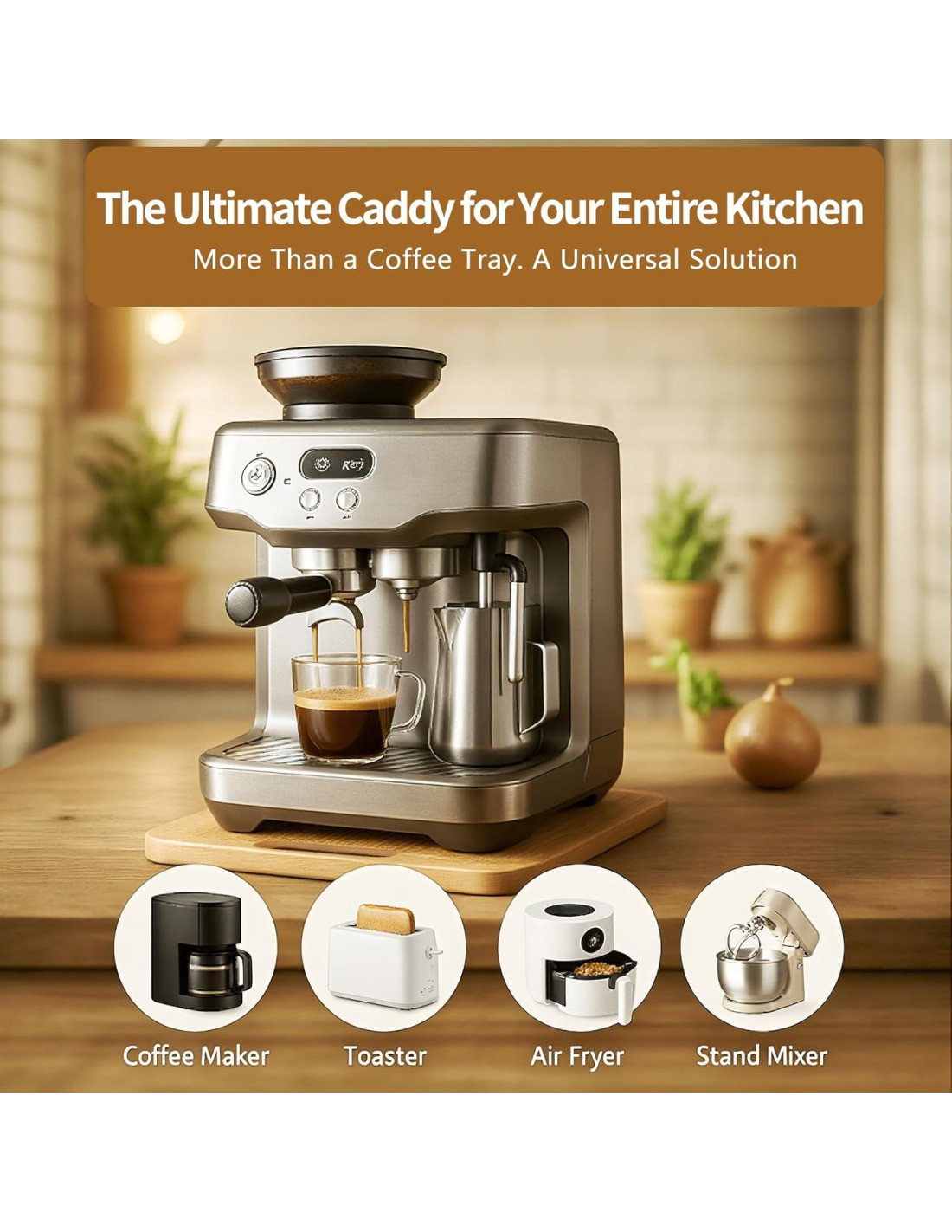 - MEJORA ELEGANTE Y FUNCIONAL | Eleva la estética de tu cocina con el cálido y natural aspecto de este deslizador de café de bambú premium. Un caddy de electrodomésticos hermoso y práctico que simplifica tu rutina diaria. Haz clic en 'Agregar al carrito' ahora para un flujo de trabajo de cocina más inteligente y elegante.