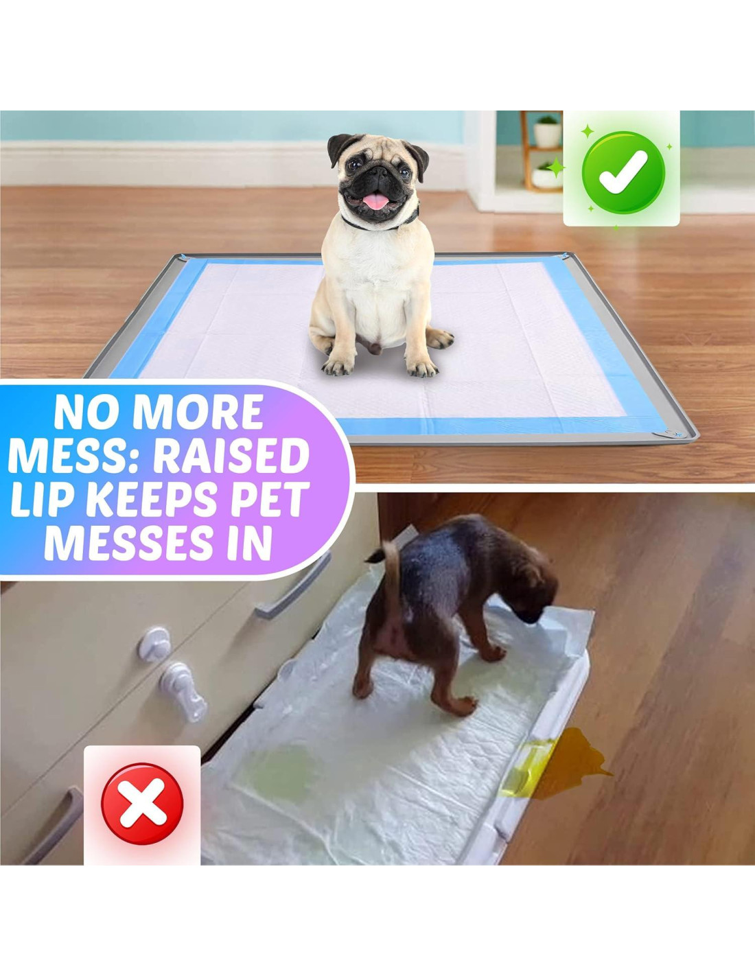 - [Diseño Antideslizante e Higiénico:] Disfruta de una experiencia antideslizante con nuestro portapads para perros antideslizante que sostiene los pads firmemente en su lugar, incluso con mascotas enérgicas. Este diseño también previene que la orina quede atrapada, promoviendo un ambiente limpio e higiénico.