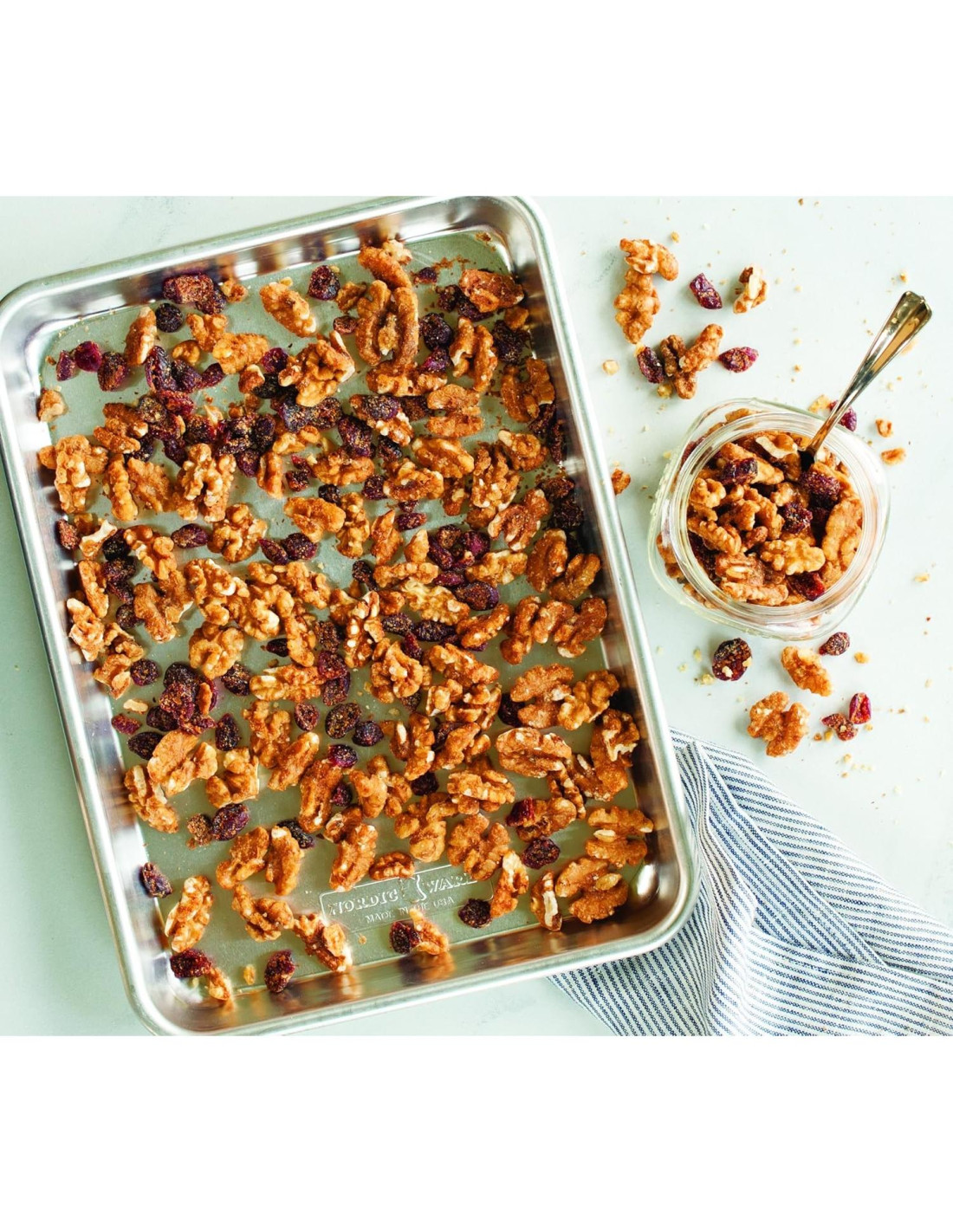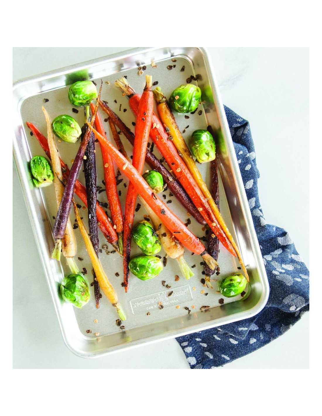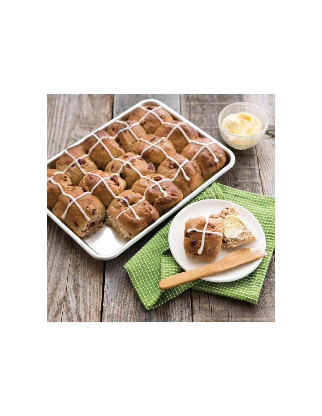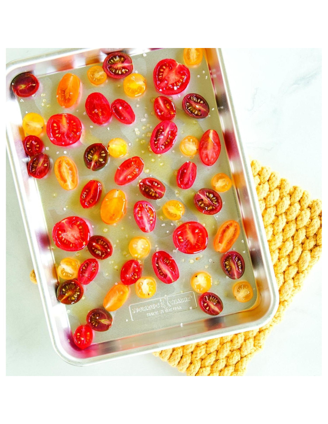 Los profesionales de la repostería saben que el secreto para una cocción uniforme y un dorado perfecto es cocinar en utensilios de aluminio. El aluminio es ampliamente conocido por su excelente conductividad térmica y cocina de manera más uniforme y completa que otros metales. Compatible con papel pergamino o manteles de silicona si se desea. Fácil de limpiar; se recomienda lavar a mano. Cada bandeja tiene dimensiones exteriores de 32.8 x 24.4 x 2.8 centímetros y dimensiones interiores de 30.7 x 22.4 x 2.8 centímetros. El aluminio es reactivo a ingredientes ácidos como el vinagre y productos de tomate. Estos alimentos pueden oscurecer, picar o corroer la bandeja después de un uso prolongado. Hecho en América con materiales nacionales e importados. Nuestras piezas de utensilios de aluminio de calidad están hechas para soportar toda una vida de uso en su cocina doméstica.