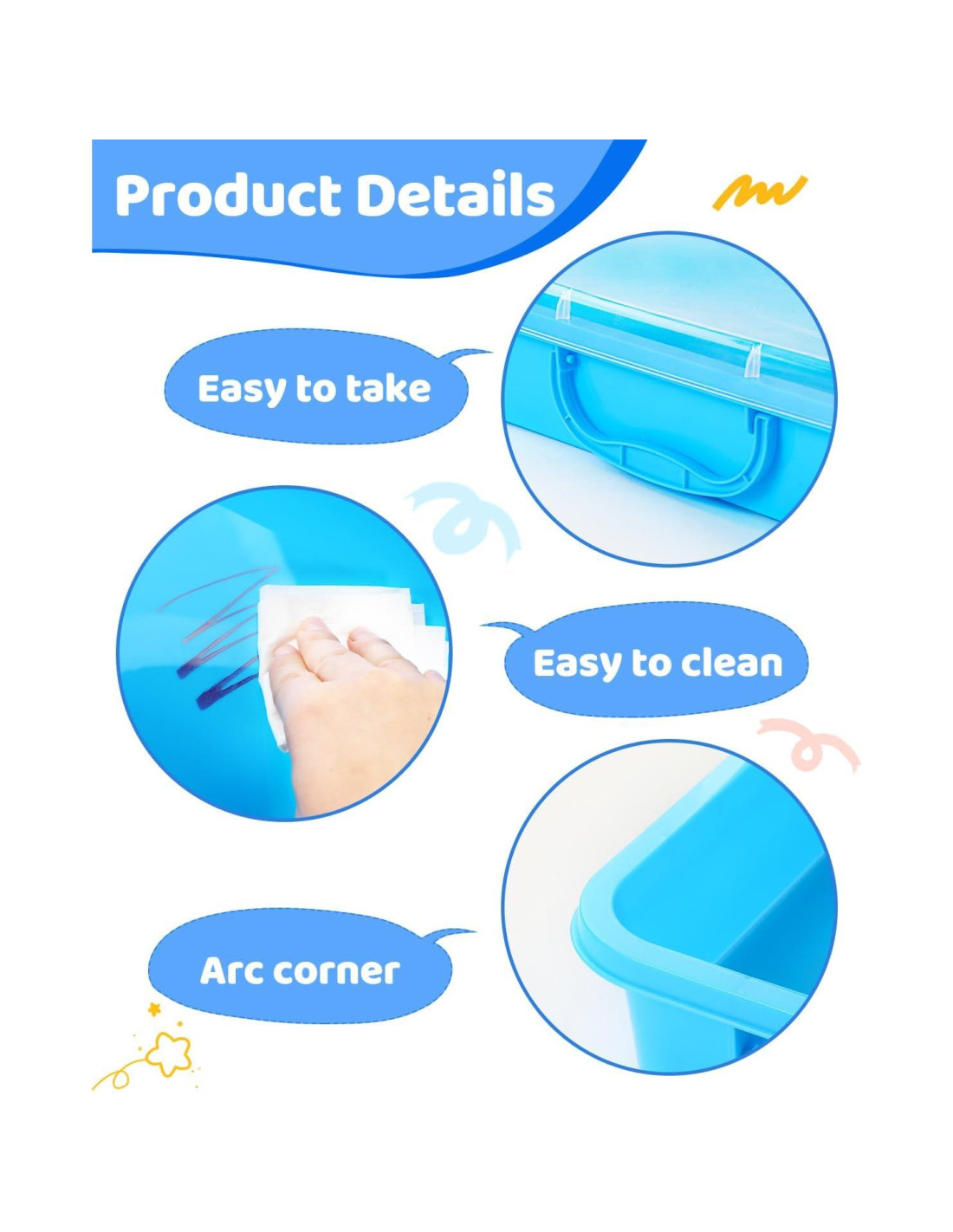 - Duradera y Segura: Midiendo 33 x 21.6 x 7.6 centímetros, la bandeja sensorial viene con tapas y asas y está construida para durar. Las esquinas redondeadas garantizan seguridad, haciéndola realmente amigable para los niños.