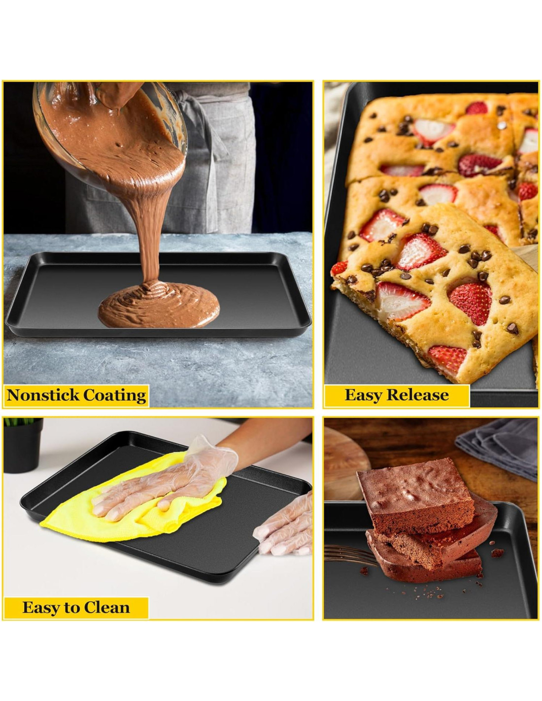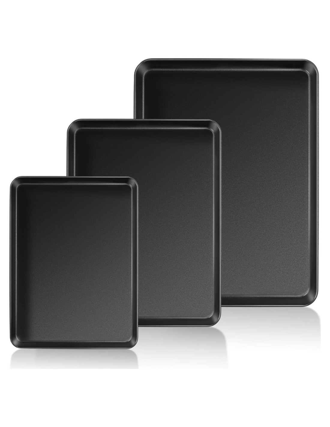 - VERSÁTILES BANCADAS DE HORNEADO DE 3 PIEZAS: Este combo de utensilios de horneado incluye 3 tamaños diferentes de bandejas para hornear diseñadas para uso diario en la cocina: Grande: 40.6 x 30.5 x 2.5 cm, Mediana: 31.5 x 24.6 x 2.5 cm, y Pequeña: 26.4 x 20.3 x 2.5 cm, se ajusta a la mayoría de los hornos tostadores regulares, satisface diversas necesidades de horneado, como hornear galletas, galletas, rollos de gelatina, pasteles, tocino, verduras y asar carne, filete, pavo, también es buena para usarse como bandeja de servicio tanto para uso doméstico como comercial