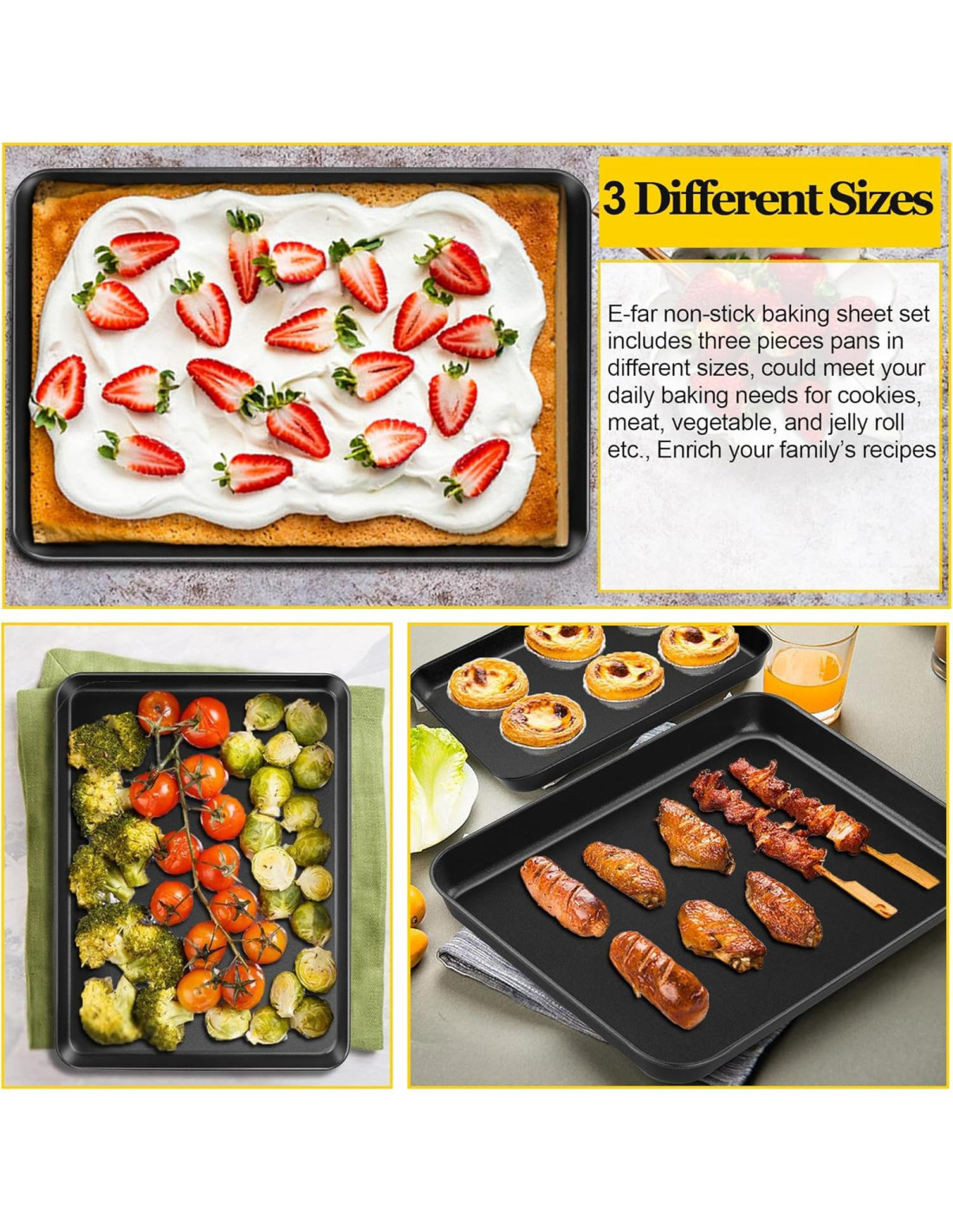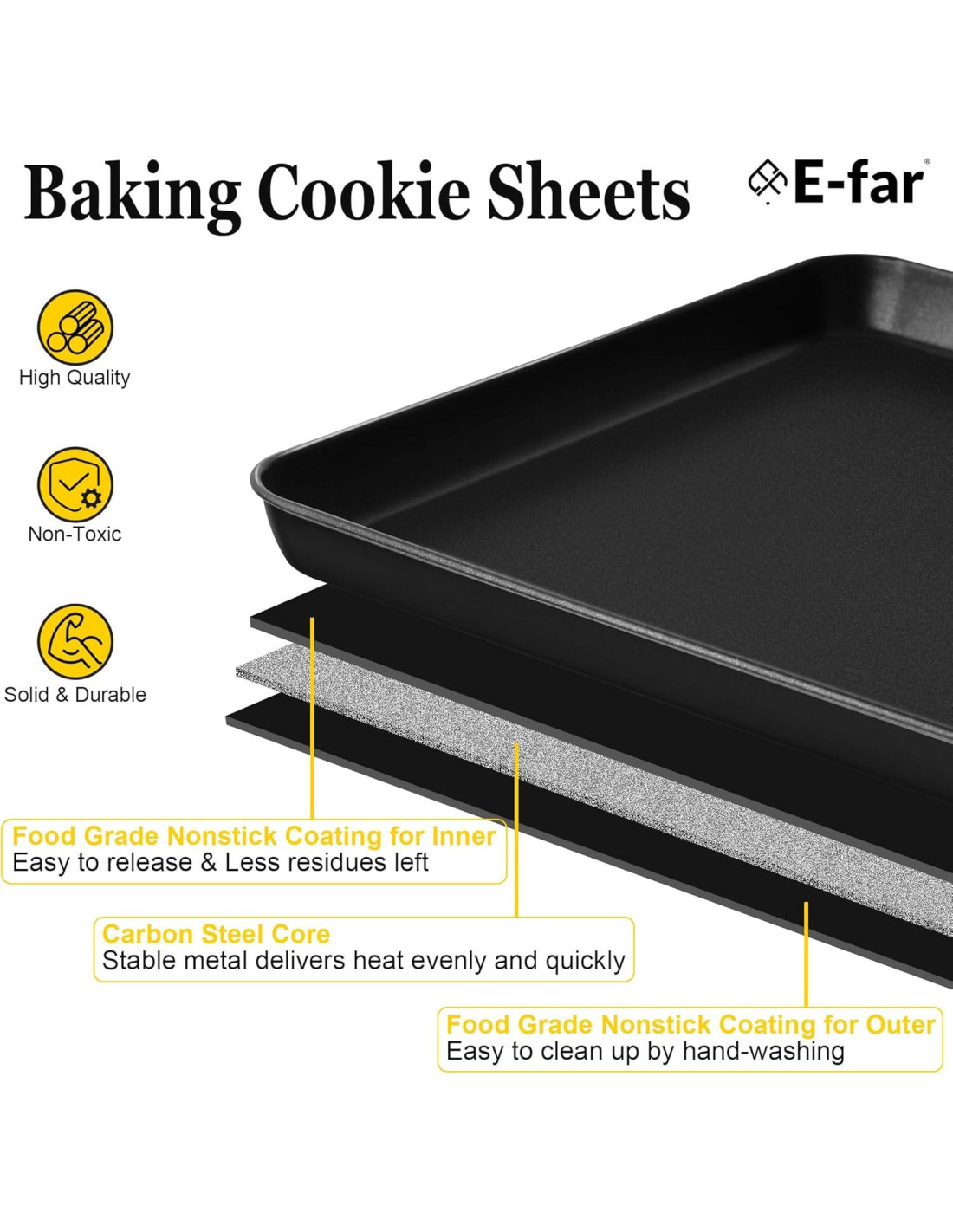 - MATERIAL PREMIUM CONSTRUIDO PARA DURAR: Bandejas para hornear antiadherentes E-far de 3 piezas hechas de un núcleo de acero al carbono de buena calidad, gran alternativa a las bandejas de pastel de aluminio, metal sólido con construcción robusta para mejor resistencia a la oxidación, lo suficientemente fuerte y no fácil de romper a diferencia de los platos de hornear de vidrio, material premium duradero para años de hornear y cocinar alimentos deliciosos todos los días