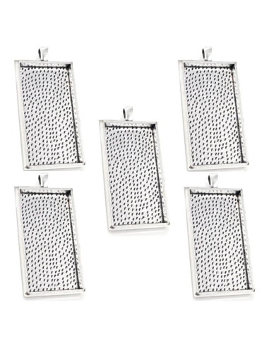 La bandeja de colgante de base de cabochón bezel en blanco de 25x50mm puede ser utilizada en muchos proyectos de fabricación de joyas DIY. Usando imágenes de cabochón fotográfico, obras de arte, esmalte de uñas, resina, epoxi, arcilla polimérica, piedras, encantos o pintura, puedes hacer llaveros y collares personalizados únicos. Puedes hacer tiradores de cremalleras, clips para mochilas, colgantes para espejos traseros, etiquetas de equipaje únicas, colgantes de recuerdos y regalos para ocasiones especiales para bodas y fiestas, por nombrar algunas ideas. Las bandejas de colgante de cabochón bezel en blanco de 25x50mm se ofrecen en Bronce Antiguo, Cobre Antiguo, Plata Antigua, Plata, Negro y Multicolor.