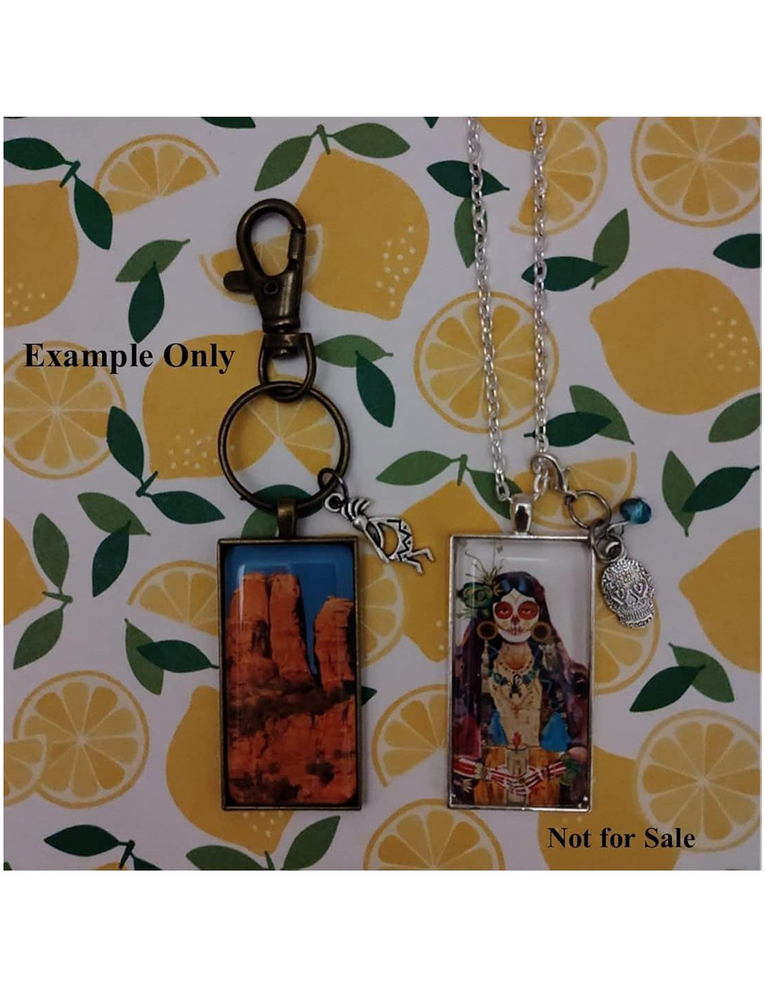 - Usando imágenes de cabochón fotográfico, obras de arte, esmalte de uñas, resina, epoxi, arcilla polimérica, piedras, encantos o pintura, puedes hacer un diseño único en la parte inferior del vidrio para un llavero personalizado. El llavero puede ser utilizado como tiradores de cremalleras, clips para mochilas, colgantes para espejos traseros, etiquetas de equipaje únicas, colgantes de recuerdos y regalos para ocasiones especiales para bodas y fiestas, por nombrar algunas ideas.
