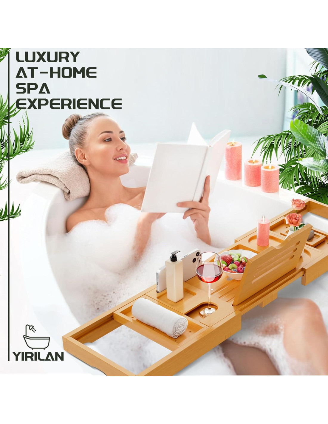 - REGALO PERFECTO: Imagina lo agradable que es en la bandeja del baño con una copa de vino, un delicioso bocadillo y tu película favorita. No se requiere ensamblaje y es fácil de cuidar. La bandeja de bañera de bambú es un regalo lujoso para el Día de San Valentín, Acción de Gracias y Navidad. El plato para jabón gratis es una adición ideal al conjunto de bandejas para bañera