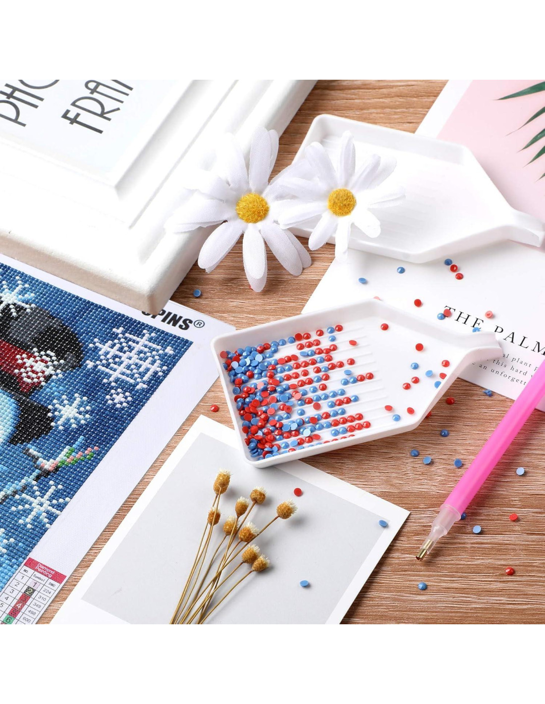 - [Fácil de Usar] : Vierte los accesorios de diamante en la bandeja de plástico y agítala suavemente para que los diamantes se ordenen. De esta manera, puedes usar fácilmente el bolígrafo de perforación puntiagudo para pegar los diamantes, lo que mejorará enormemente la eficiencia de hacer pinturas de arte de diamante.