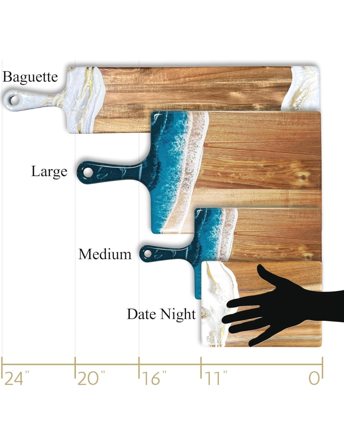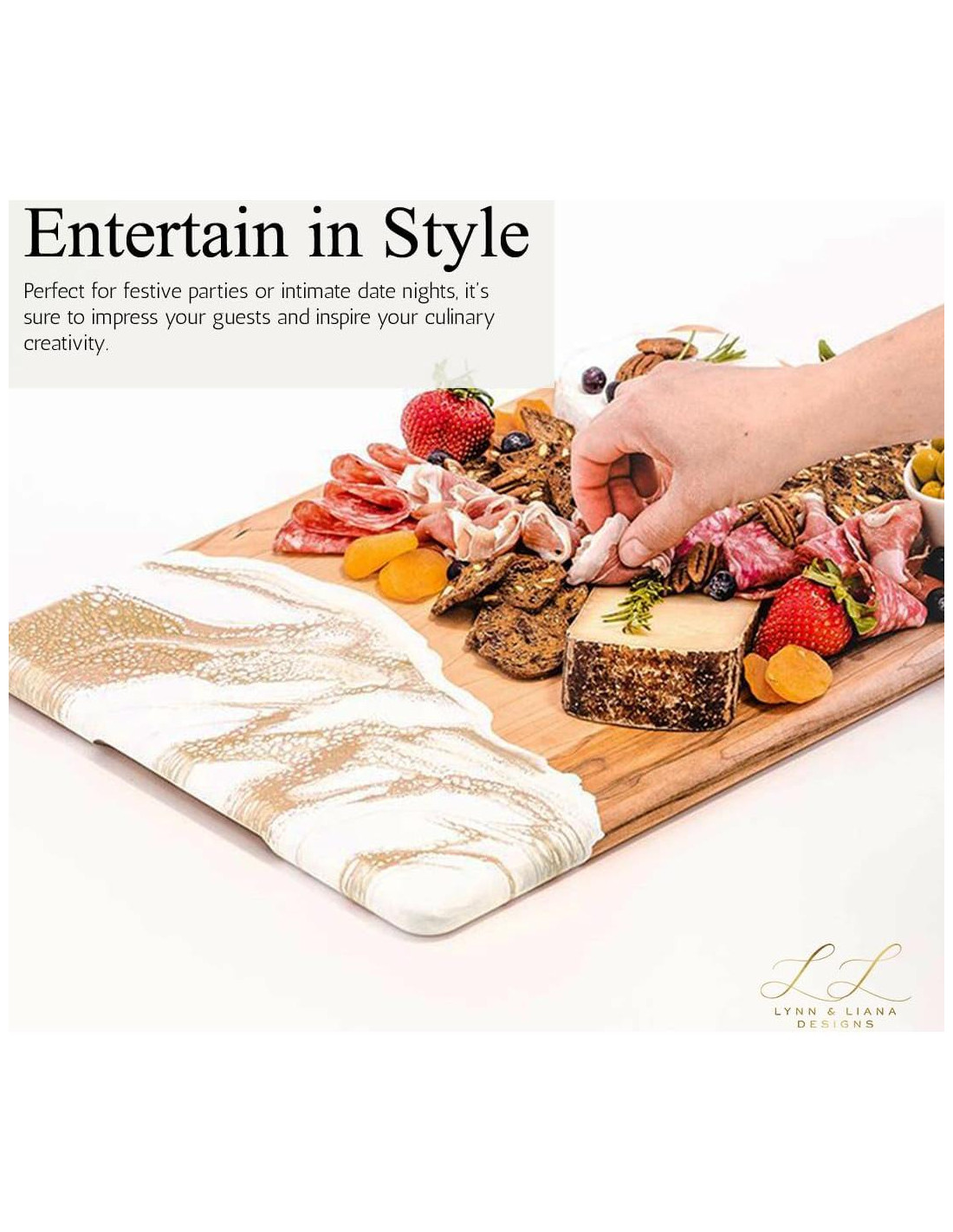 - ENTRETEN CON ESTILO - Haz una declaración en cada reunión con nuestra tabla de cortar de resina epóxica. Perfecta para fiestas festivas o noches de citas íntimas, seguramente impresionará a tus invitados e inspirará tu creatividad culinaria.