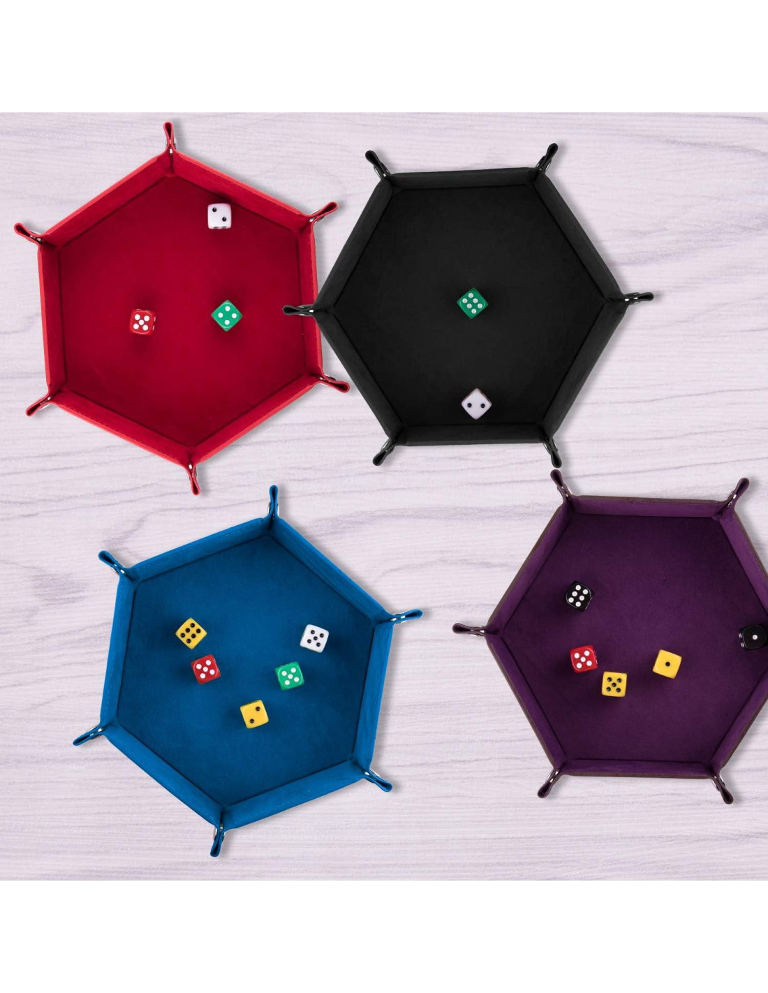 - Incluye paquete - viene con 4 bandejas hexagonales para dados en 4 colores diferentes, incluyendo rojo, negro, azul y violeta, un regalo perfecto para satisfacer tu necesidad en el juego de dados DND