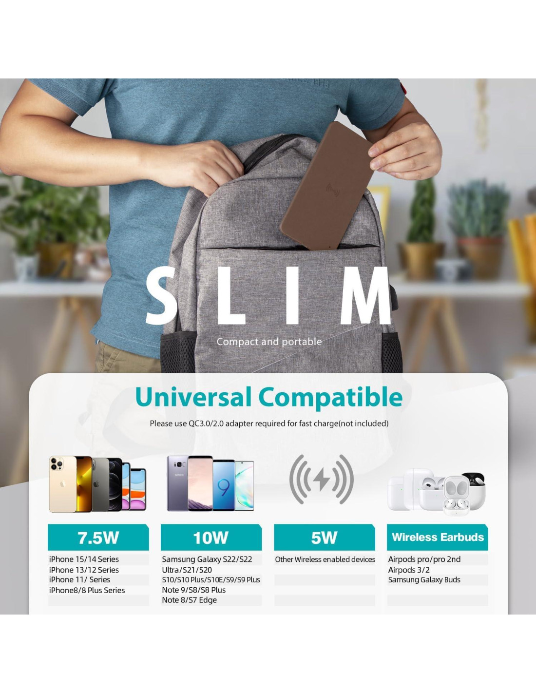 - Compatibilidad Universal del Cargador Inalámbrico: El cargador integrado te permite cargar rápidamente tu teléfono sin tener que lidiar con un cable ya que es carga inalámbrica. Amplia compatibilidad con iPhone 16/15/14/13/12/12 Mini/12 Pro Max/SE, 11, 11 Pro, 11 Pro Max, XR, Xs Max, XS, X, 8, 8 Plus, Galaxy S24/S23/S22/S21/20 S10 S9 S8 de carga rápida de 10W, Note 10, y Airpods 4/3/2, Airpods Pro 2. El cargador inalámbrico es desmontable, lo que lo hace portátil y fácil de llevar