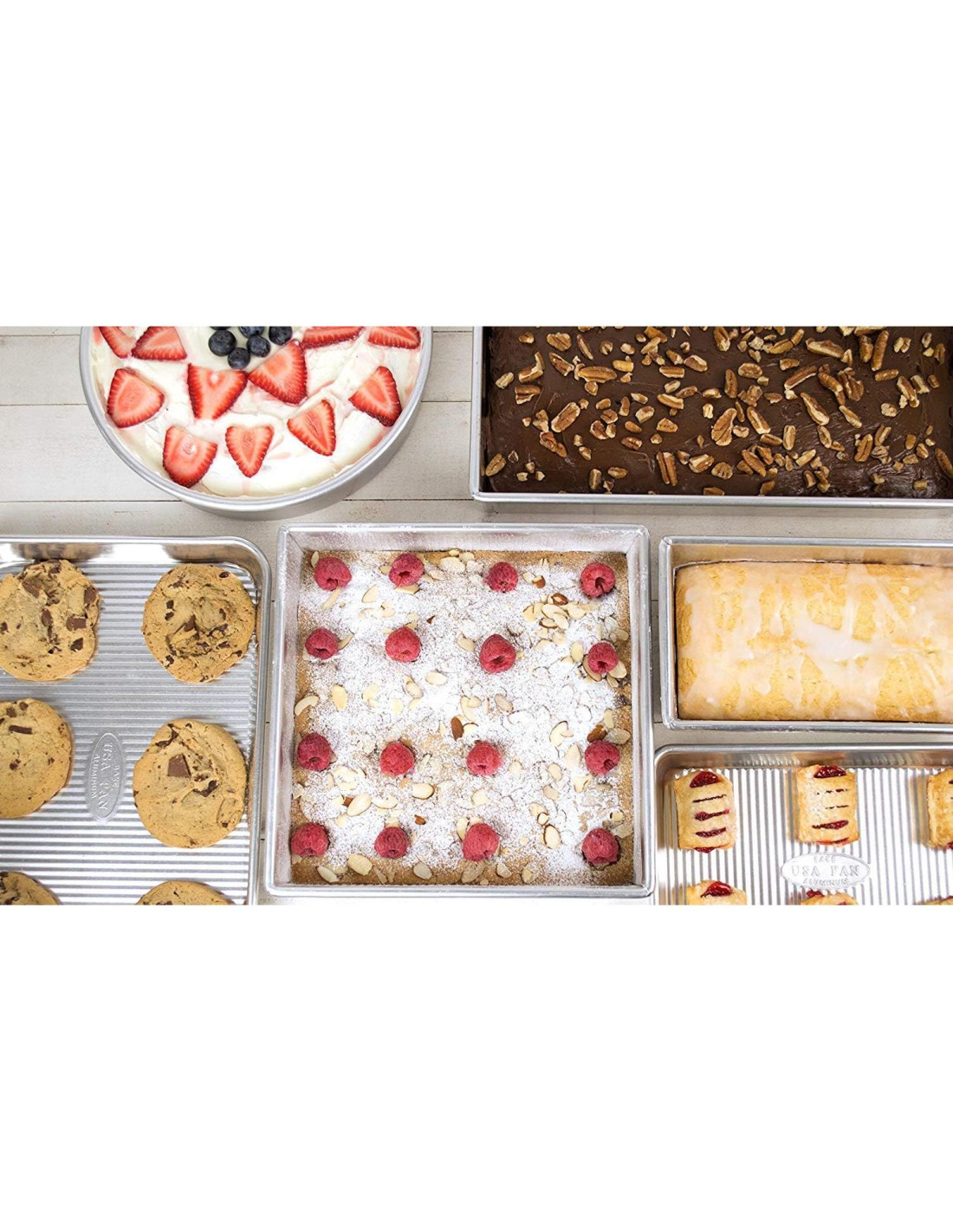 Hecho de aluminio de calidad comercial que nunca se oxida, la batería de cocina de aluminio sin recubrimiento proporciona a los panaderos caseros una experiencia de horneado clásica para crear productos horneados caseros impecables. Ahora con superficies de horneado corrugadas para mayor resistencia y rendimiento. La tecnología de mantenerse plana ayuda a resistir la deformación y el borde reforzado añade resistencia y durabilidad. Fabricado en EE. UU. por USA Pan, la batería de cocina de aluminio sin recubrimiento es PTFE.