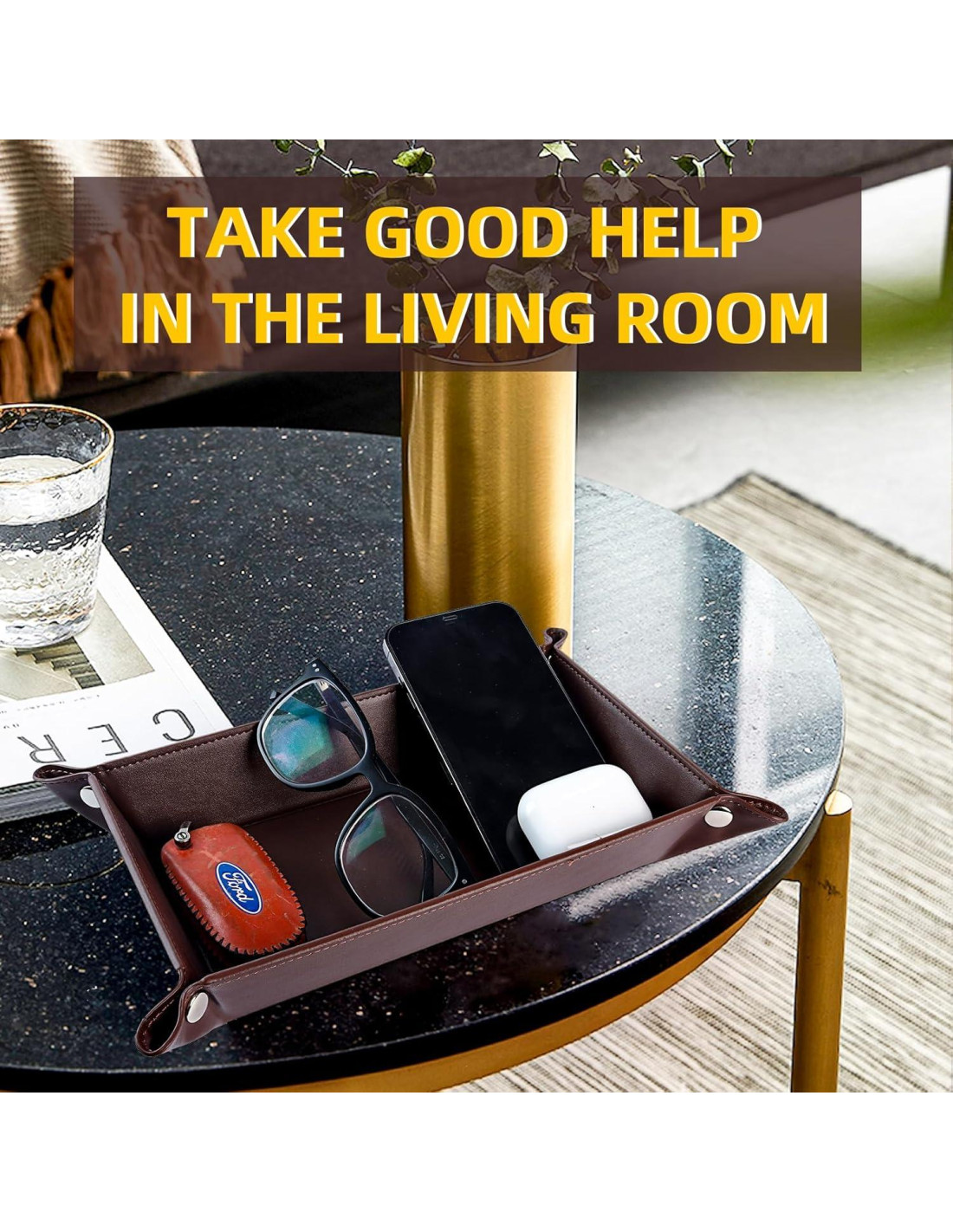 - Herramienta Perfecta de Organización - La bandeja de valet de cuero sintético es un cambio de juego para mantenerse organizado con estilo. Esta bandeja organizadora de escritorio no solo es funcional, es una adición elegante y sofisticada a cualquier espacio. ¡Reúne tus artículos en un solo lugar con este gran ayudante de organización del hogar!