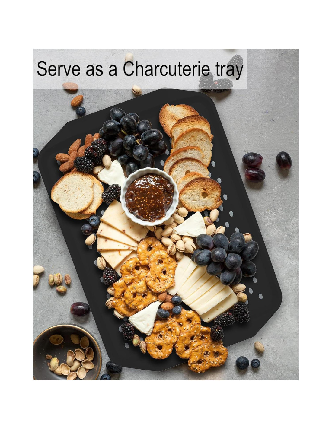 - MATERIAL PREMIUM: Hecha de plástico y material de goma, es una bandeja de comida más rígida, el contacto directo con la comida en esta bandeja es posible. Esta bandeja de servir de plástico es irrompible y no perderá su superficie plana con el tiempo, no se recomienda el uso de lavavajillas en esta bandeja, recomendamos limpiarla con agua corriente o un paño húmedo (se incluye un paquete de limpieza de 2 piezas)