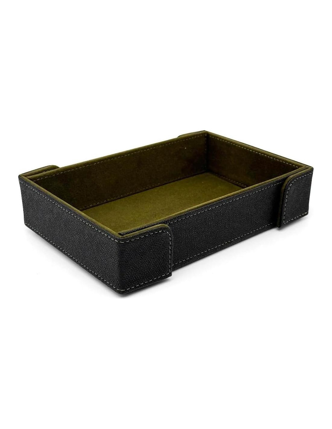 - Duradera y Estilosa: Fabricada con un exterior de cuero vegano negro premium y bordes reforzados, esta bandeja está hecha para durar a través de innumerables campañas y noches de juego. La combinación de durabilidad y un aspecto moderno la convierte en un accesorio destacado en cualquier mesa de juego.