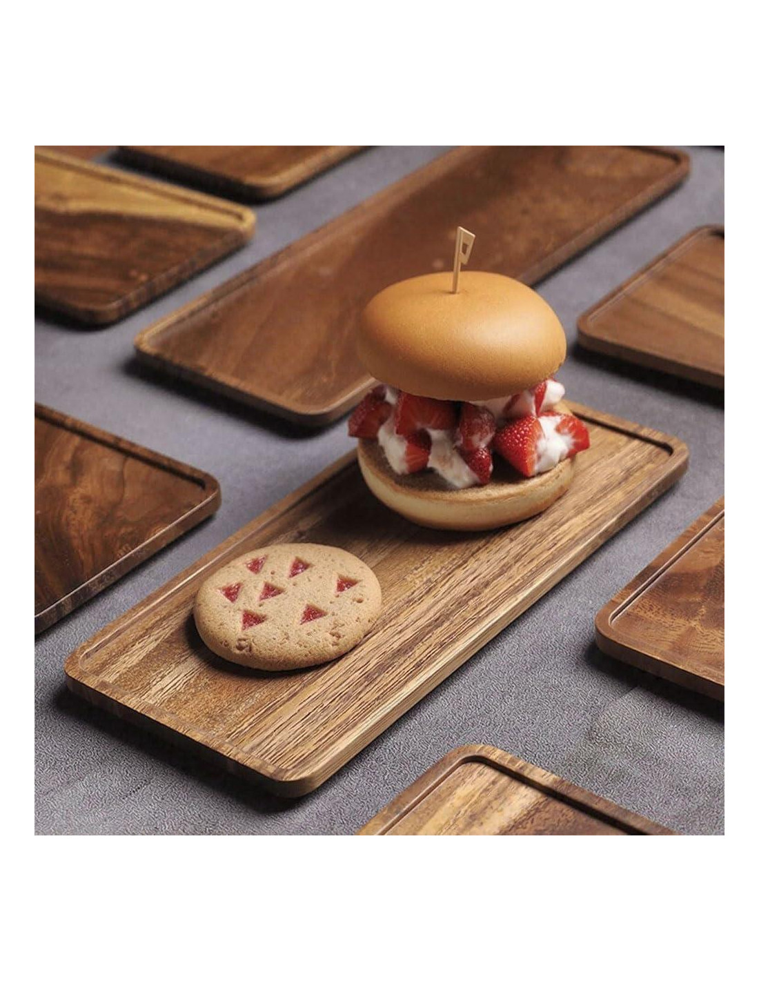 - Construcción de Madera de Acacia Premium: Fabricadas con madera de acacia 100% natural, estas bandejas de servicio son altamente duraderas, resistentes a rayones y perfectas para servir comida, queso, frutas y aperitivos. La rica veta natural añade un toque de elegancia a cualquier mesa.