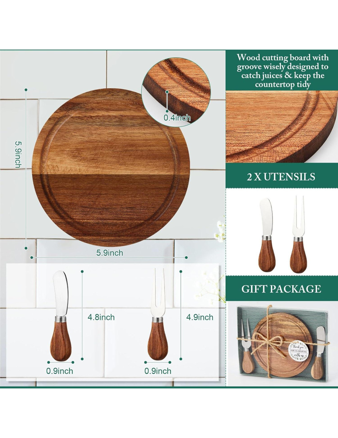 - Seguro y Confiable: las pequeñas tablas de charcutería están hechas de acacia de calidad con superficie suave, fuertes y seguras de usar; El cuchillo y el tenedor están hechos de acacia y acero inoxidable, las etiquetas y cajas de regalo están hechas de materiales de papel, impresas claramente y pueden servirte durante mucho tiempo