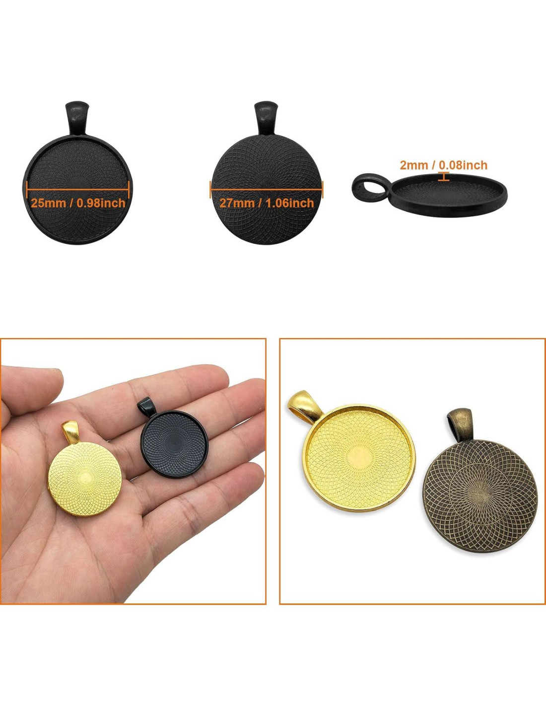 - [Amplia aplicación] Estas bandejas de bisel para colgantes son perfectas para hacer colgantes de collar, aretes, colgantes de cameo, manualidades, joyería de fotos, resina, etc.