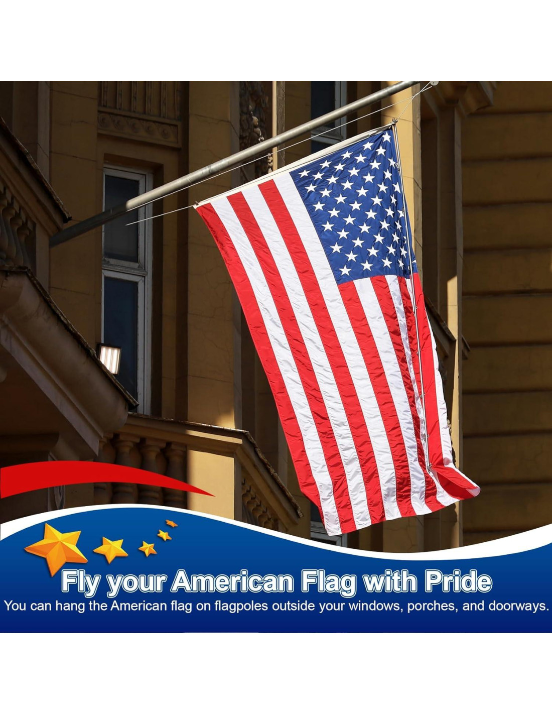 - Uso Versátil de la Bandera Americana - Muestra Orgullo en Cualquier Lugar: Esta bandera americana de 3 pies x 5 pies (0.91x1.52 metros) es perfecta para porches, granjas, jardines o mástiles, y también funciona bien como decoración interior de bandera americana o regalo patriótico. Las banderas 3x5 también son adecuadas para vehículos durante los viajes. Donde sea que ondees la bandera americana 3x5, se erige como un símbolo de honor, patriotismo y confianza en las banderas americanas para exterior 3x5 hechas en EE. UU.