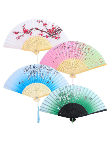 - Diseño delicado y hermoso: recibirás 4 piezas de abanicos plegables, y los abanicos plegables están diseñados con hermosos patrones y decorados con delicados flecos, adecuados para la mayoría de las niñas y mujeres.