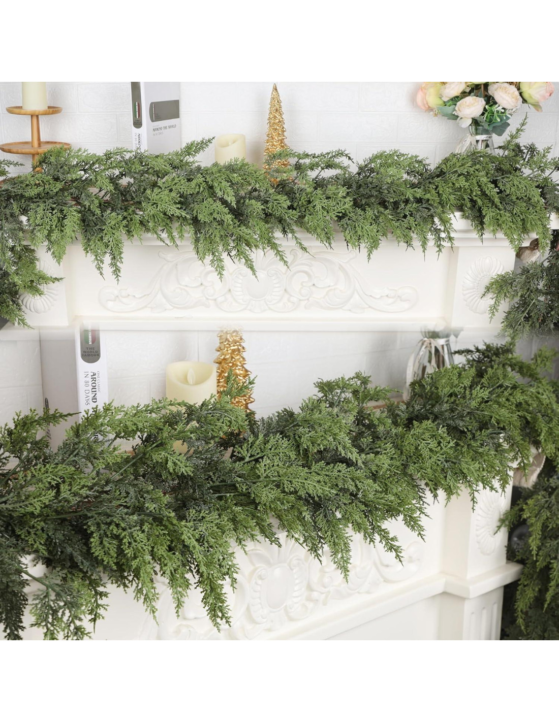 - Moldeo y Aseguramiento DIY Sin Esfuerzo: Gracias a su núcleo de alambre flexible, puedes moldear fácilmente esta guirnalda de cedro alrededor de chimeneas, barandillas de escaleras, marcos de puertas o ventanas. Simplemente dale forma como desees y asegúralo con clavos estándar, ganchos adhesivos o cuerda (no incluidos), sin necesidad de herramientas especializadas para tu guirnalda navideña, decoración de chimenea o exhibición en barandillas.