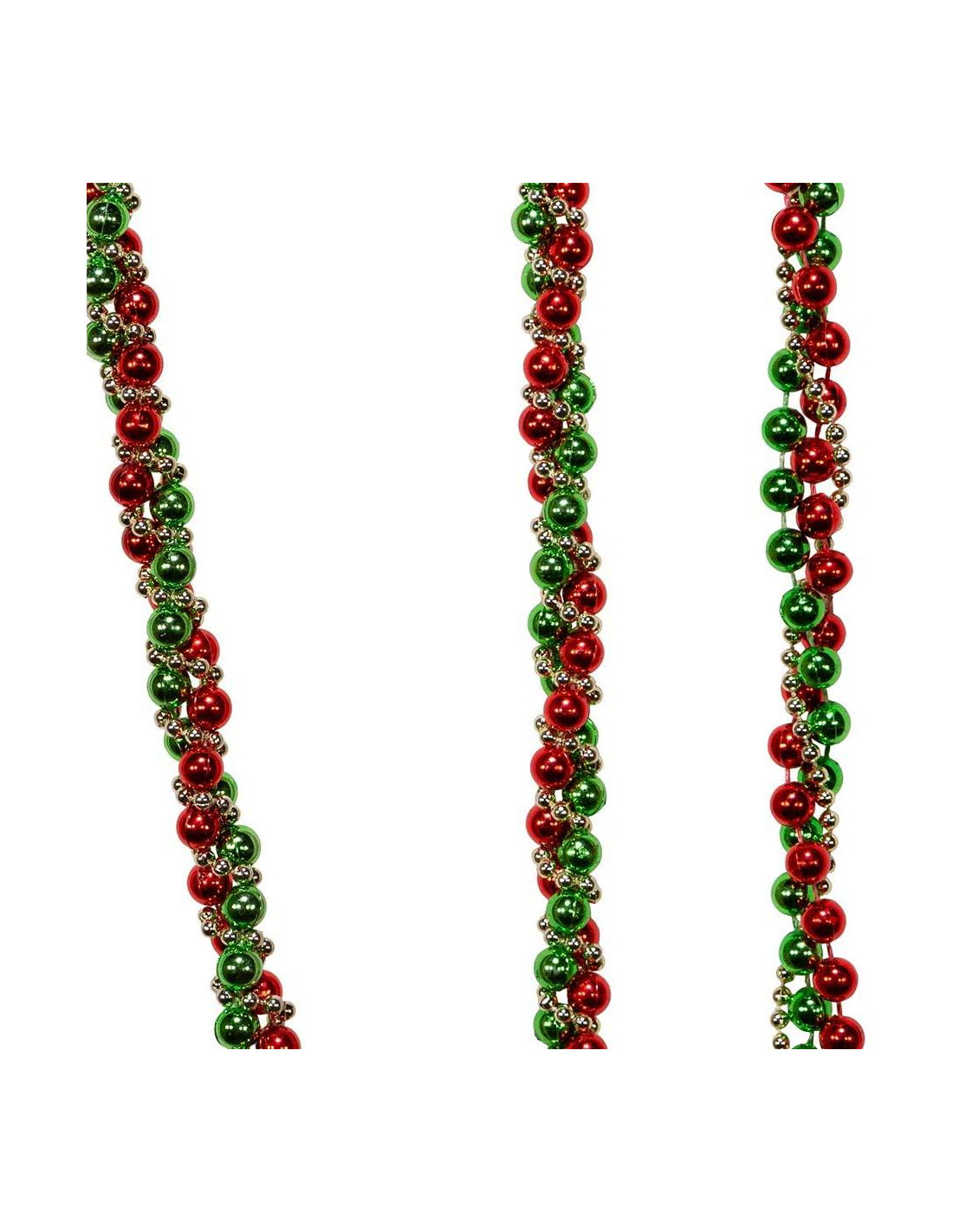 Esta guirnalda de cuentas retorcidas roja, verde y dorada de 2.74 metros de Kurt Adler es una adición elegante a cualquier decoración navideña o árbol de Navidad. Esta guirnalda presenta cuentas rojas, verdes y doradas en un patrón retorcido. ¡La adición festiva perfecta a cualquier decoración navideña!