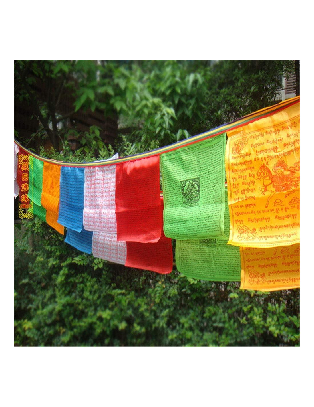 - Usos: Puedes colgarlo en tu casa, tu tienda, tu jardín o en la calle, donde quieras mostrar el estilo decorativo tibetano. Las banderas de oración son dispositivos simples que, junto con la energía natural del viento, armonizan silenciosamente el entorno, aumentando imparcialmente la felicidad y la buena fortuna entre todos los seres vivos.