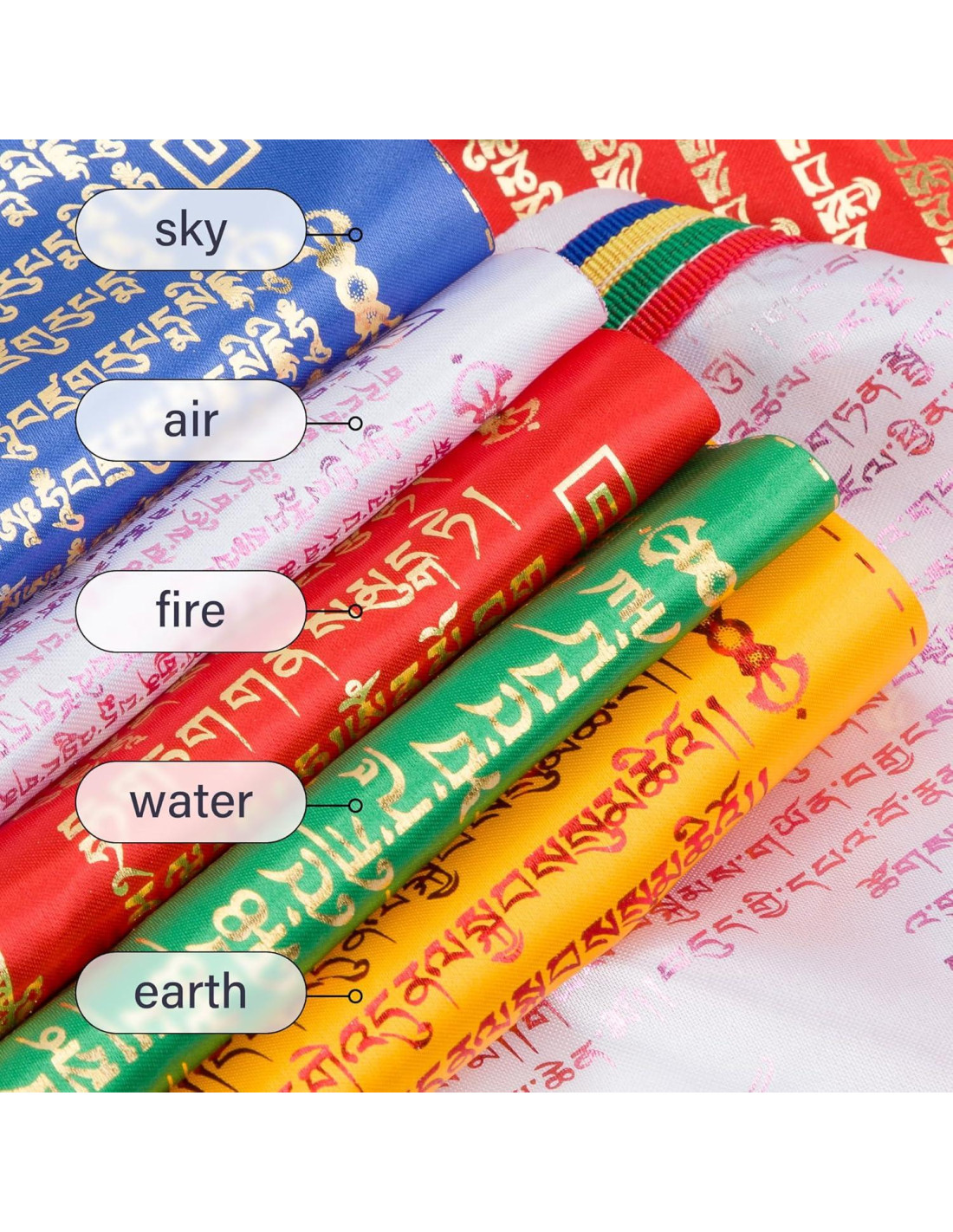 - Hecho a Mano y Único: Estas banderas de oración tibetanas están meticulosamente elaboradas con materiales de alta calidad que pueden resistir condiciones al aire libre. Utilizando el último proceso de estampado en foil, la escritura clara y duradera asegura que las banderas no se desvanezcan fácilmente. Los cordones extra anchos son fuertes y duraderos, evitando que sean arrastrados por el viento. Difunde bendiciones y amabilidad durante todo el año con estas banderas de oración hechas a mano y únicas.