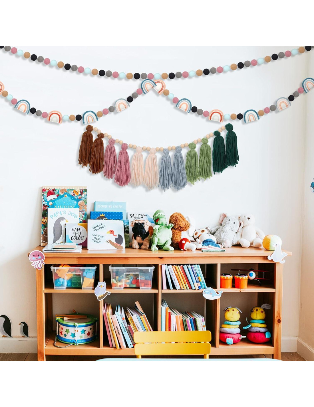 - Material Sólido: la guirnalda de borlas boho está hecha de materiales de algodón y cuentas de madera; La bandera de guirnalda de pom pom, hecha de fieltro, las banderas de arcoíris, elaboradas de fieltro de doble capa y núcleo de algodón, sólidas y confiables para durar muchas celebraciones por venir