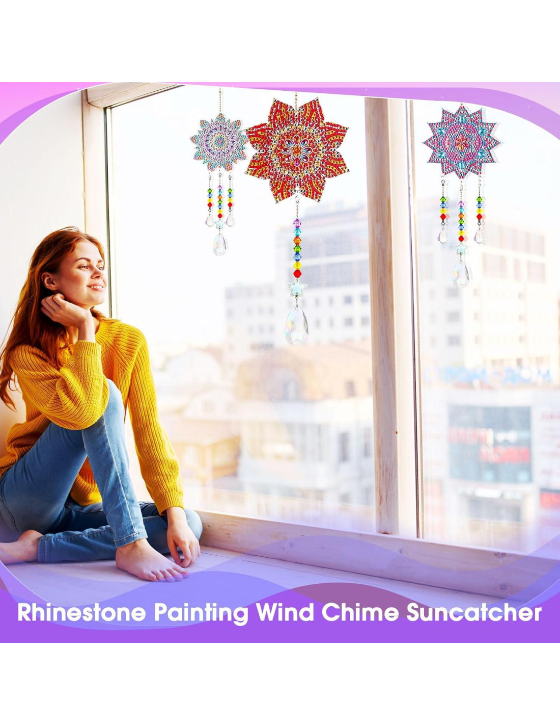- Amplia Cantidad para Usar: el paquete incluye 3 piezas de campanas de viento suncatcher de pintura de rhinestone en 3 estilos, equipadas con muchas herramientas, varias para que elijas y reemplaces, satisfaciendo tus necesidades diarias de DIY; También puedes compartirlas con tu amigo