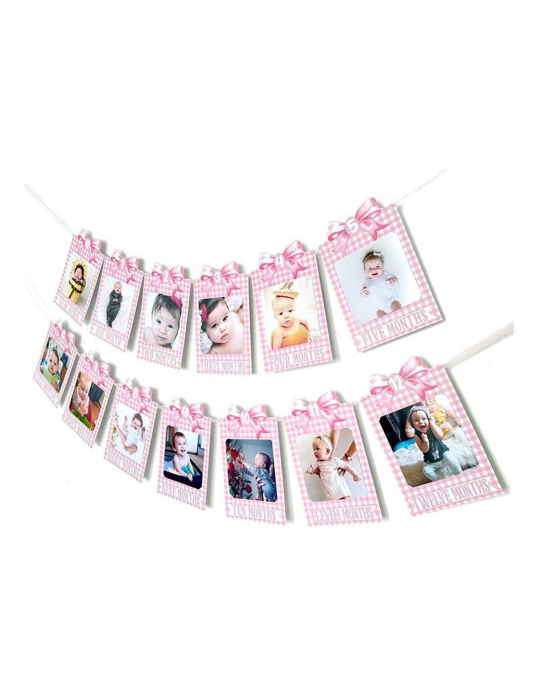 - PAQUETE INCLUIDO: Un conjunto de banner de fotos de lazo rosa de 12 meses (13 tarjetas). Una cinta rosa de 10 pies (3.05 metros) de largo con una aguja de plástico de cortesía (para un enhebrado rápido).