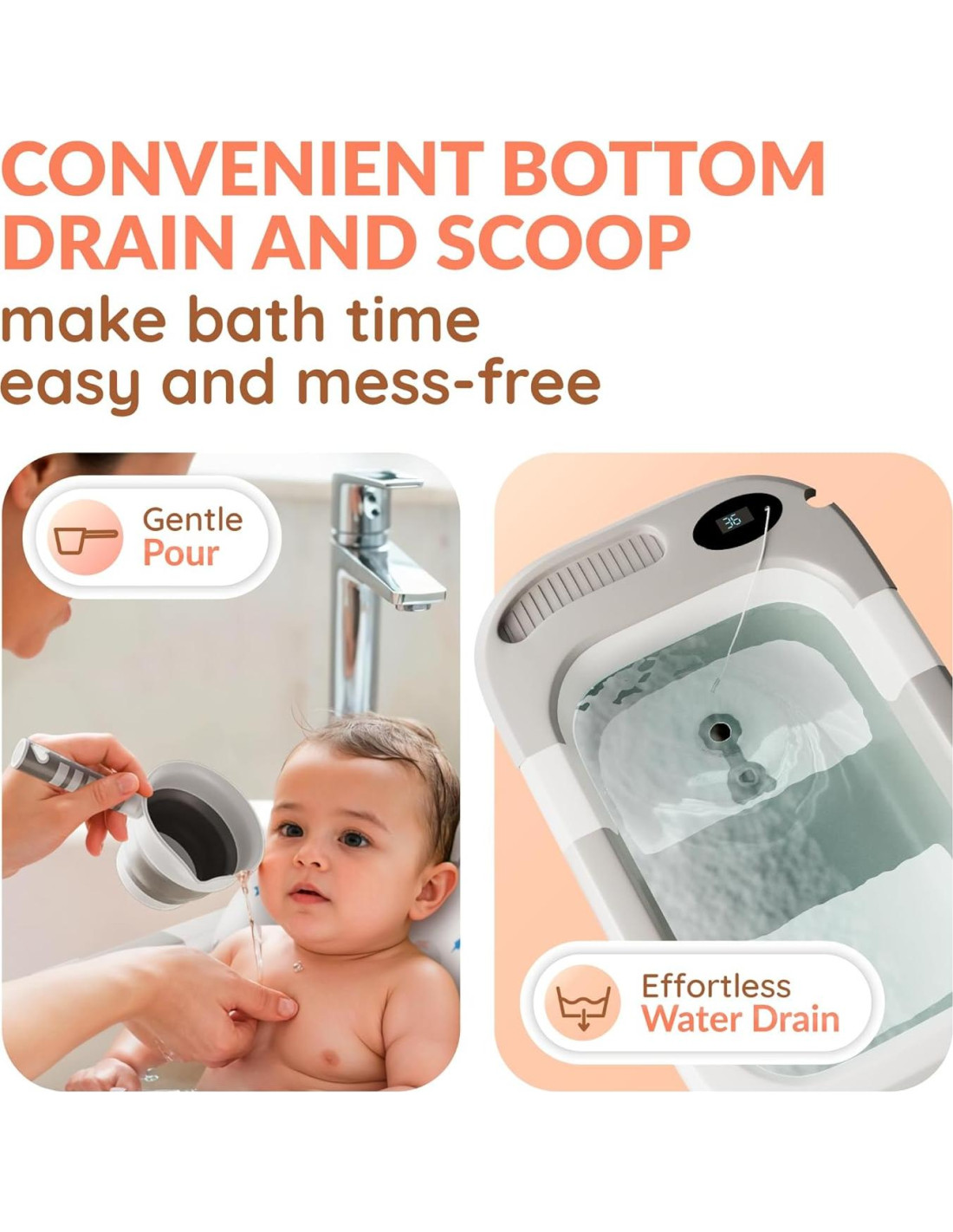 - Esta bañera para bebés, plegable y apta para viajes, incluye un termómetro incorporado y un tapón de drenaje sensible al calor para un baño seguro y cómodo. Ideal para configuraciones de ducha y uso de bañeras plegables en casa o mientras viajas.