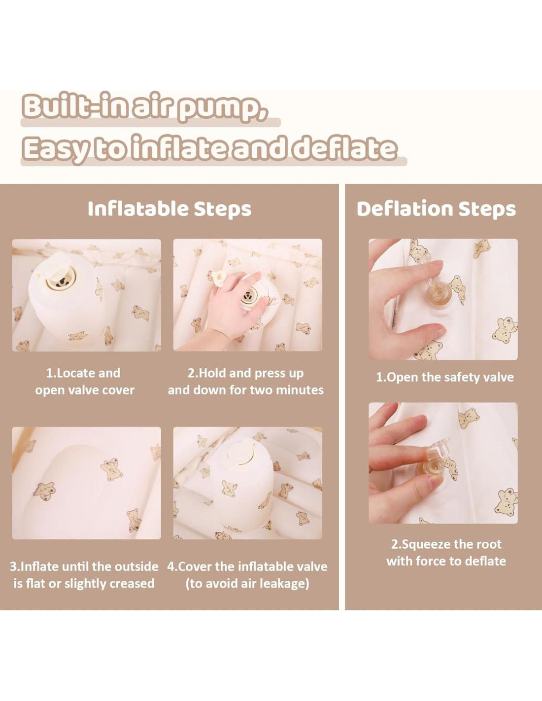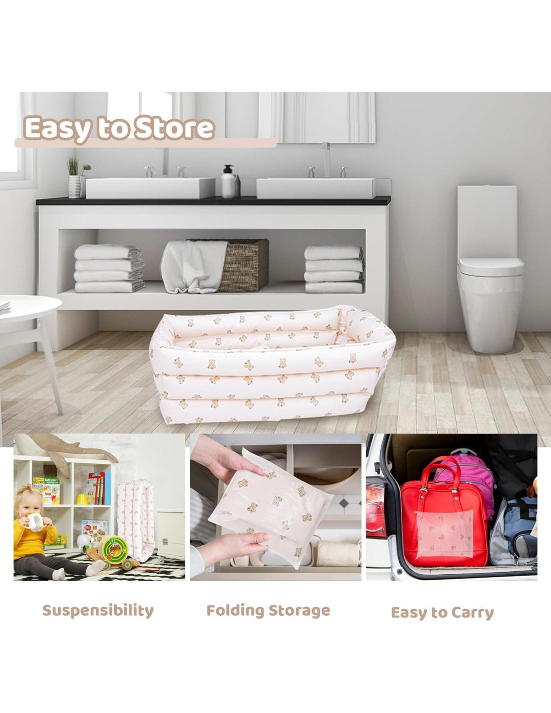 - Bañera de Viaje para Bebés: La bañera para bebés plegable se puede doblar y llevar, y se puede inflar rápidamente a través de la válvula inflable cuando se usa, fácil de operar, fácil de drenar con un gran tapón de drenaje