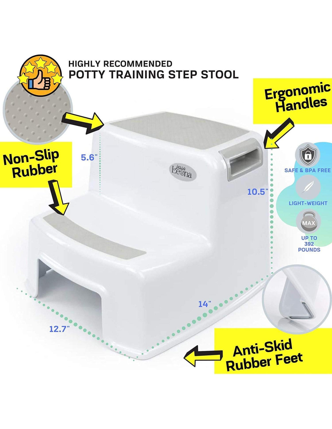 - PERFECTA PARA EL ENTRENAMIENTO EN EL INODORO: Cuando se usa junto con nuestro asiento de entrenamiento para inodoro a juego, nuestra escalera hace que el entrenamiento en el inodoro sea muy fácil. Hecha de los mismos materiales y con una paleta de colores gris y blanco neutro, este conjunto se integra perfectamente en la decoración de cualquier baño.