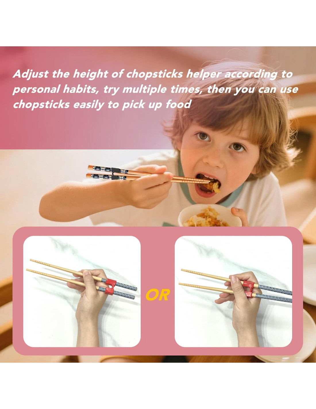 - El paquete incluye: 7 pares de palillos de entrenamiento reutilizables para niños o adultos, 7 piezas de ayudantes de palillos de plástico, satisfacen las necesidades diarias de toda tu familia para aprender a usar palillos