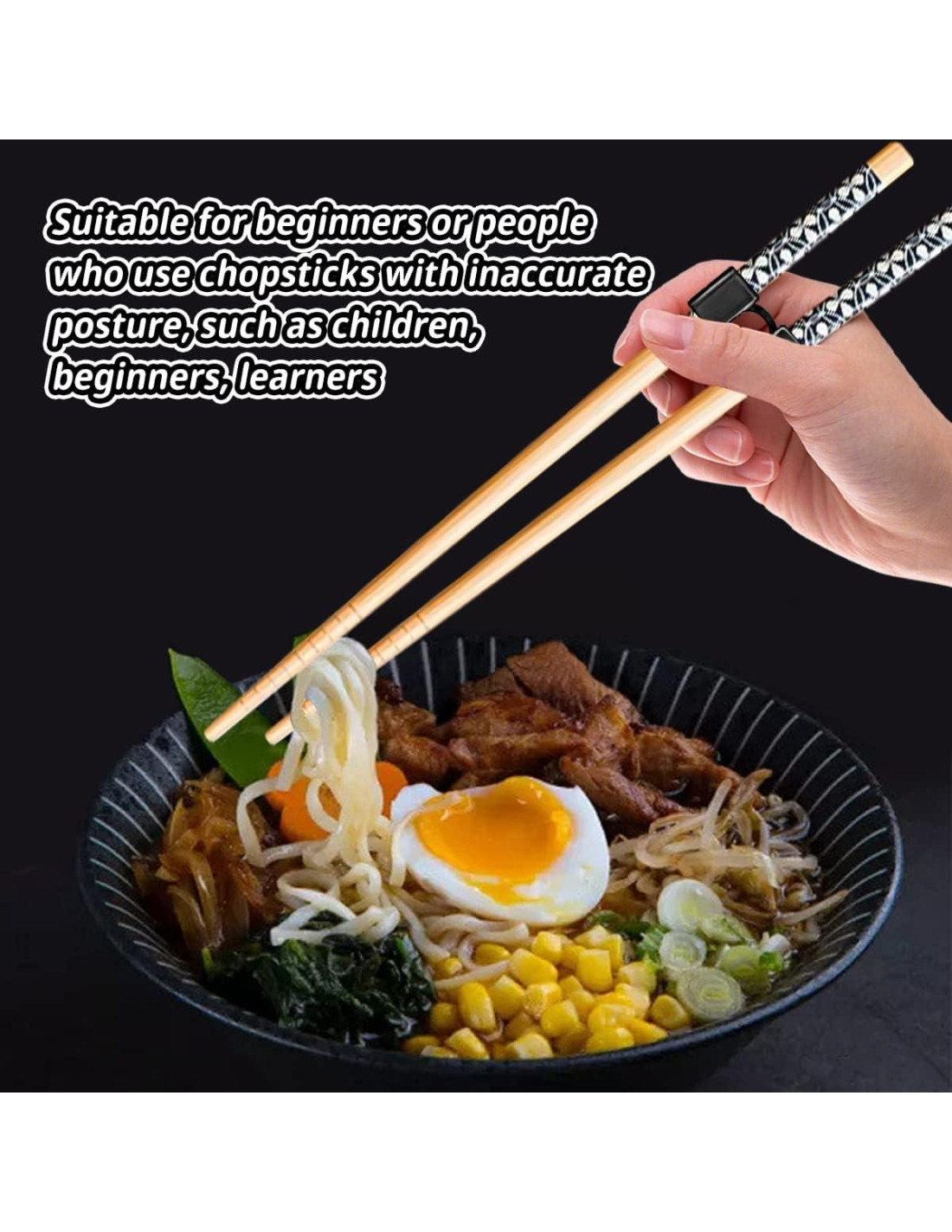 - MATERIALES DE ALTA CALIDAD: Adecuados para que los principiantes aprendan a usar los palillos muy rápidamente. Según la imagen, ajusta la altura del ayudante de palillos de acuerdo a tus hábitos personales, puedes usar los palillos fácilmente para recoger alimentos como sushi, fideos, arroz, dumplings, hot pot, y aprender las habilidades de usar palillos al mismo tiempo.