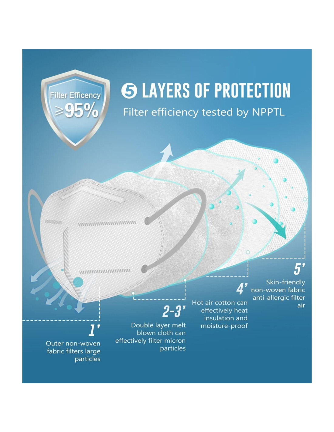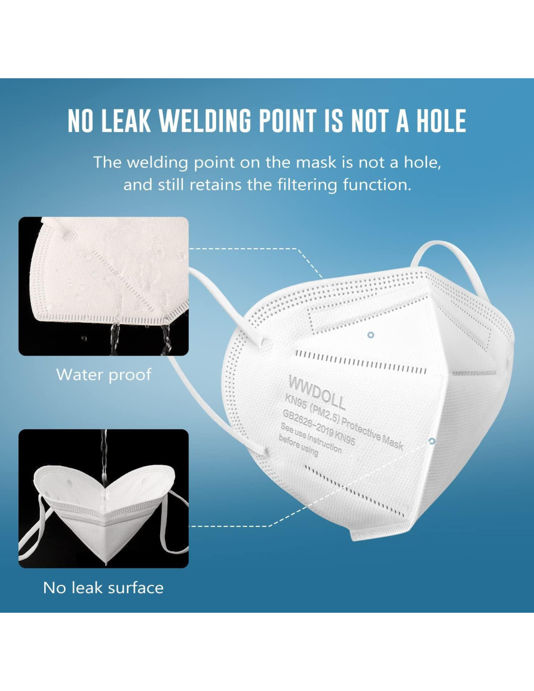 - Mascarilla de 5 Capas: La mascarilla KN95 de 5 capas WWDOLL es protectora y de alta eficiencia de filtrado. La capa exterior de 1 capa de tela no tejida puede filtrar partículas grandes, las 2 capas intermedias de tela de fusión pueden bloquear más del 95% de las partículas, 1 capa de algodón de aire caliente puede filtrar pm2.5 y la capa interior de 1 capa de tela no tejida es amigable con la piel y más suave, lo que te brinda una experiencia de uso cómoda al mismo tiempo que protege tu respiración con alta eficiencia de filtrado.