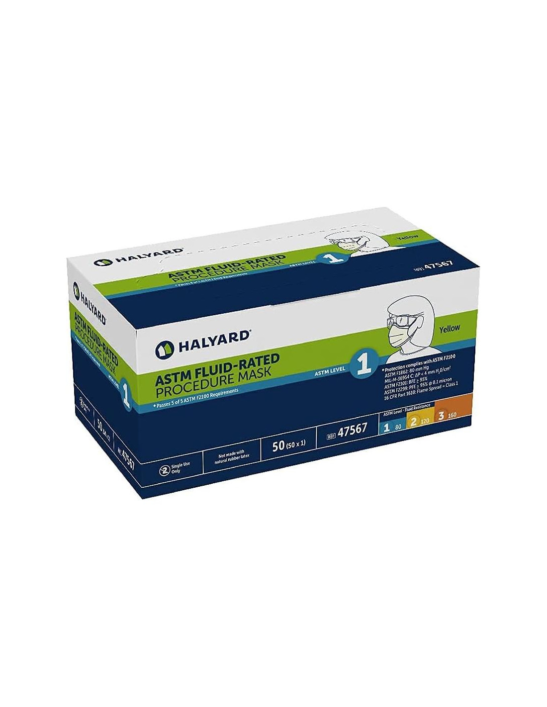 - Las Máscaras de Procedimiento Desechables Halyard Nivel 1 cumplen con los estándares ASTM F2100 Nivel 1