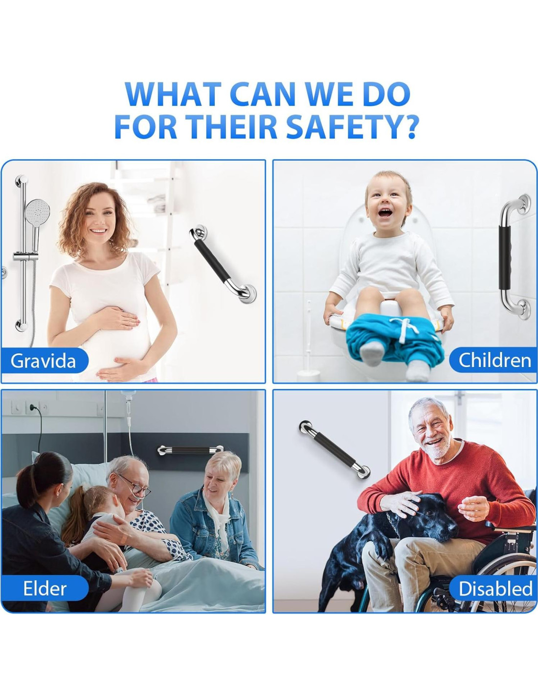 - MATERIAL EXCEPCIONAL: Las barras de agarre para duchas para ancianos están hechas de acero inoxidable y silicona, son impermeables y resistentes. Soportan hasta 227 kilogramos, proporcionando estabilidad y equilibrio para ancianos, discapacitados, embarazadas, personas lesionadas, niños y crean una experiencia segura en el baño y escaleras para tu familia. Estas barras de agarre para discapacitados solo se utilizan para asistir y soportar adecuadamente parte del peso del cuerpo, no todo.