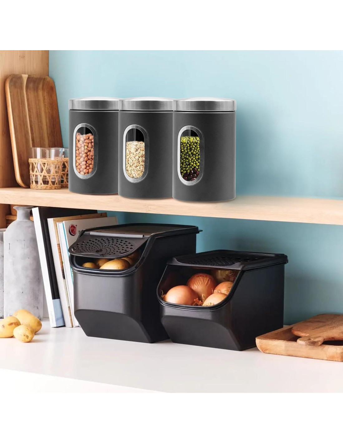 - Uso múltiple: Estos tarros de cocina se pueden usar como contenedores de harina o azúcar, tarros de cocina para caramelos, fideos, frijoles, té, bocadillos u otros alimentos secos. Tenga en cuenta que no se recomienda contener líquidos en ellos. El conjunto de tarros grises se puede usar para la cocina, sala de estar, gabinete, restaurante, cafetería, bares.
