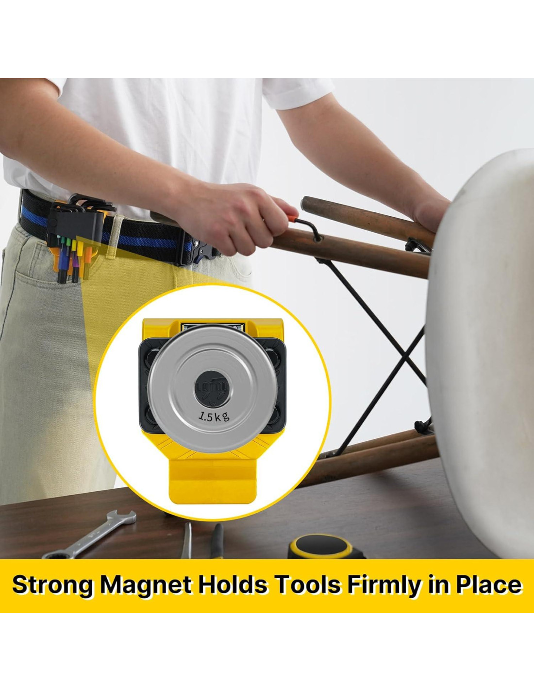 - FUERTE MAGNETISMO: El imán de neodimio N48 incorporado proporciona una fuerza magnética poderosa y estable. Puede sostener firmemente diversas herramientas metálicas magnéticas y piezas pequeñas, como clavos, tornillos, destornilladores, llaves y alicates. La capa exterior está envuelta con una cubierta protectora de TPR, previniendo eficazmente rasguños y desgaste tanto en las herramientas como en el imán.