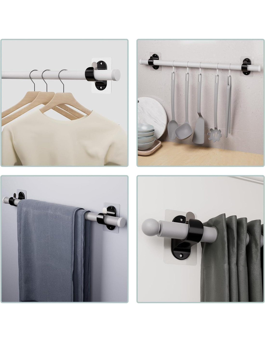 - [Capacidad de Carga de 8 kg] Ganchos de Barra de Cortina Sin Clavos Construidos con goma de silicona de alta calidad y plástico, cada soporte de barra de cortina puede soportar hasta 8 kg. Estos soportes son fuertes, duraderos y están diseñados para durar