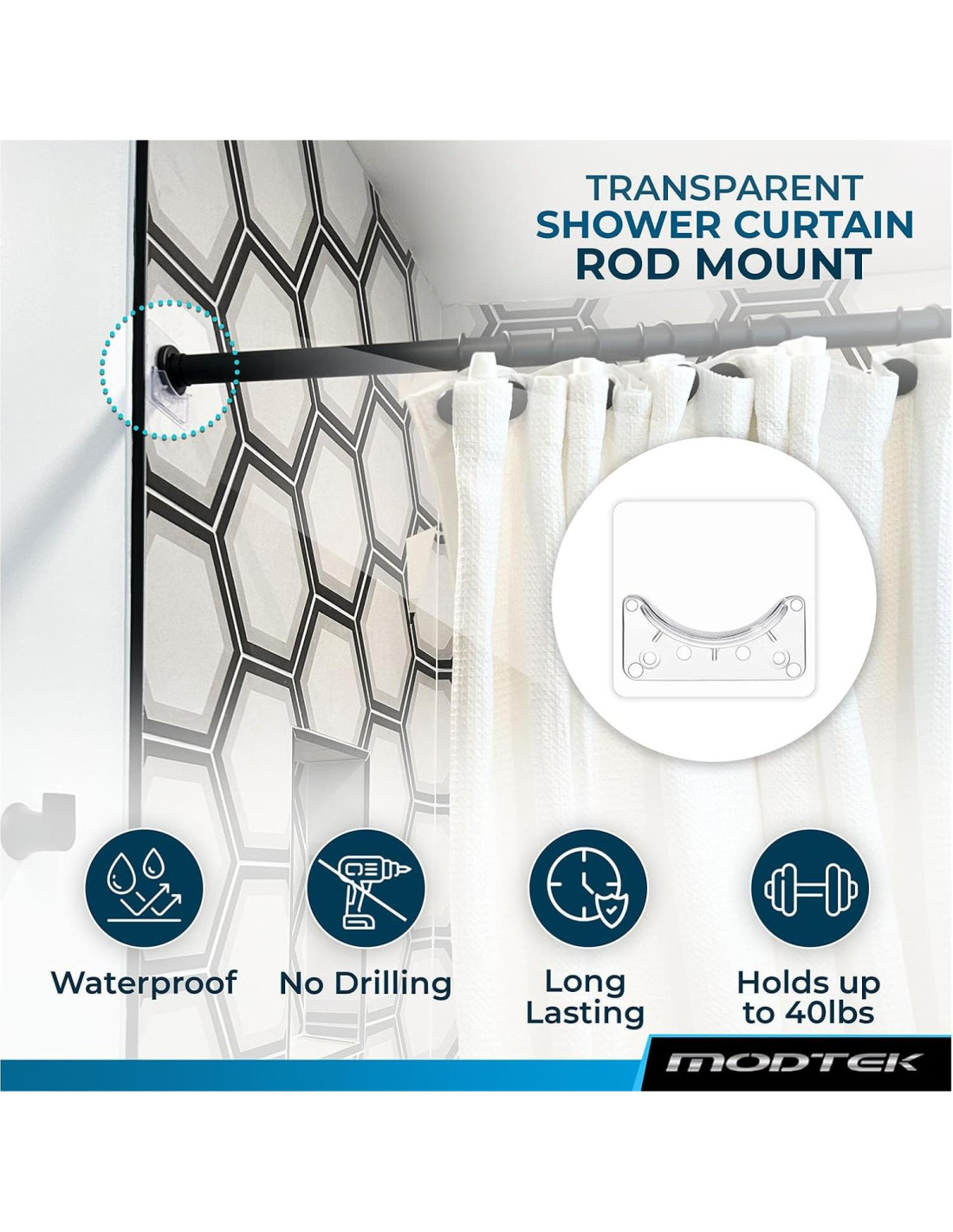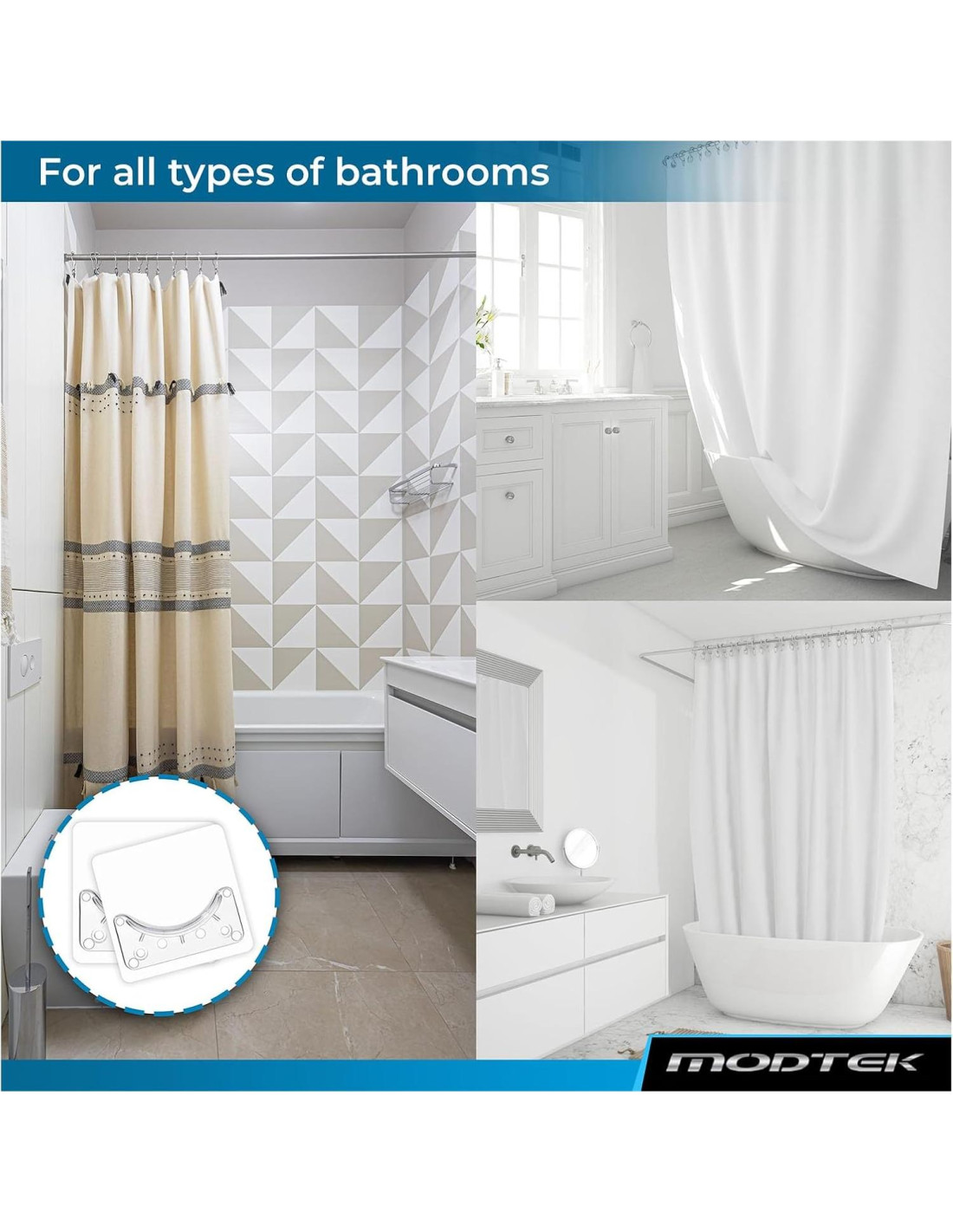 - No se requieren herramientas: La instalación del soporte para barra de cortina de ducha Modtek sin perforación es rápida y fácil. Un simple paso de pelar y pegar es todo lo que se requiere, el adhesivo de muy alta resistencia no requiere agujeros que causen daños a los azulejos o paredes del baño. El diseño de apertura superior de los soportes funciona con todos los tipos y tamaños de barras de ducha.