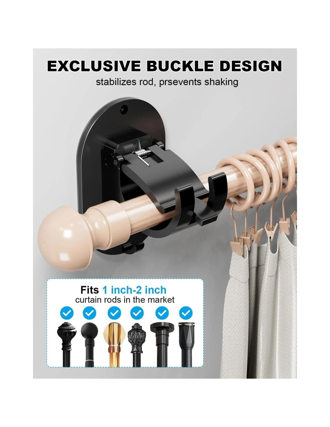 - MATERIAL DE ALTA CALIDAD - Los 4 PCS soportes de barra de cortina mejorados están hechos de material plástico PC de alta calidad y acero inoxidable. Los soportes de barra de cortina son resistentes, ligeros, con fuerte adhesión y buena capacidad de carga, larga vida útil. Con un diseño elegante y estiloso que se adapta a la mayoría de los estilos de decoración del hogar, embelleciendo tu baño/dormitorio/sala de estar/oficina.