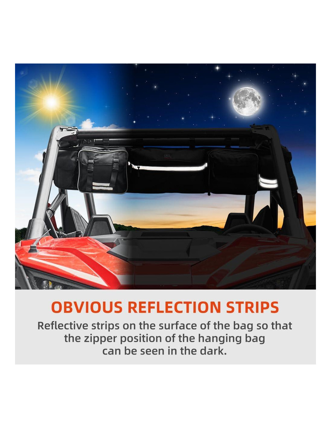 - Diseño Innovador: La versión mejorada de las bolsas de equipo de UTV tiene 4 correas ajustables alargadas y 4 sockets fijos. A diferencia de las tiras autoadhesivas, nuestra bolsa de almacenamiento puede ser reforzada firmemente en la jaula para evitar que tu bolsa se sacuda con el viento durante la conducción. La bolsa de almacenamiento de carga de jaula tiene 5 tiras reflectantes en la superficie de la bolsa de almacenamiento trasera de la jaula para que la posición de la cremallera de la bolsa colgante pueda verse en la oscuridad