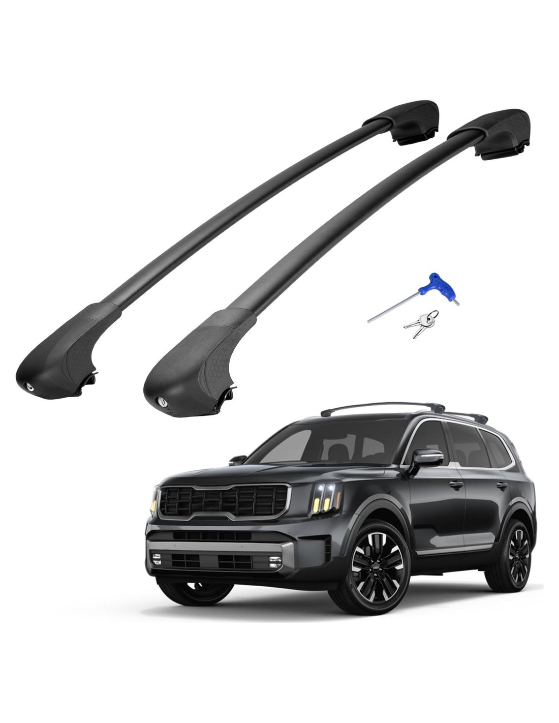 - Ajuste Perfecto, Sin Espacio: Las barras transversales de techo bloqueables son compatibles con Kia Telluride EX S SX SX-Prestige 2019 2020 2021 2022 2023 2024 2025. Las patas de la base están cubiertas con almohadillas de goma para ajustarse perfectamente al rack de techo, sin espacio y anti-rayaduras