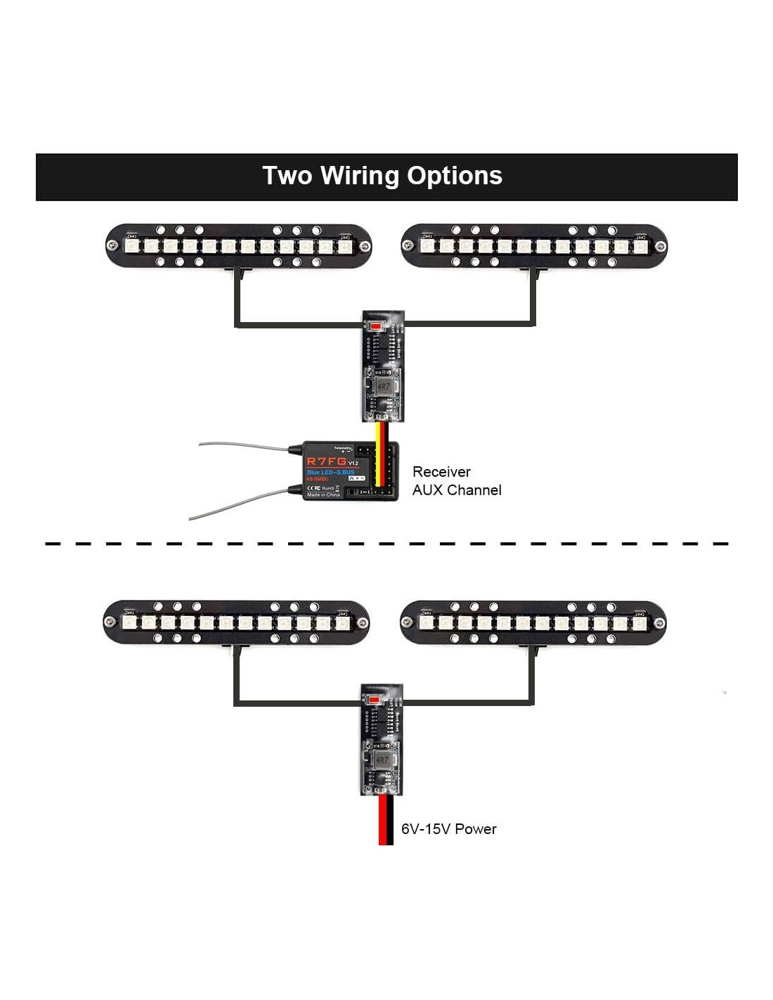 Este kit de luces LED de alta intensidad y color cambiante se puede usar como faro, luz trasera, luz de techo, luz de parachoques delantera/trasera y luz policial. La barra de luz se puede controlar de forma remota a través de su transmisor o el botón en el controlador LED. 28 modos de luz intercambiables y colores cambiantes. Control de encendido/apagado. El marco de aleación de aluminio y la cubierta protectora de acrílico transparente protegen eficazmente las luces de daños y suciedad. Compatible con casi todas las marcas de camiones RC, como Traxxas Tamiya. La barra de luz se puede montar en el cuerpo, techo, parachoques delantero y parachoques trasero utilizando el soporte y las bridas incluidos.