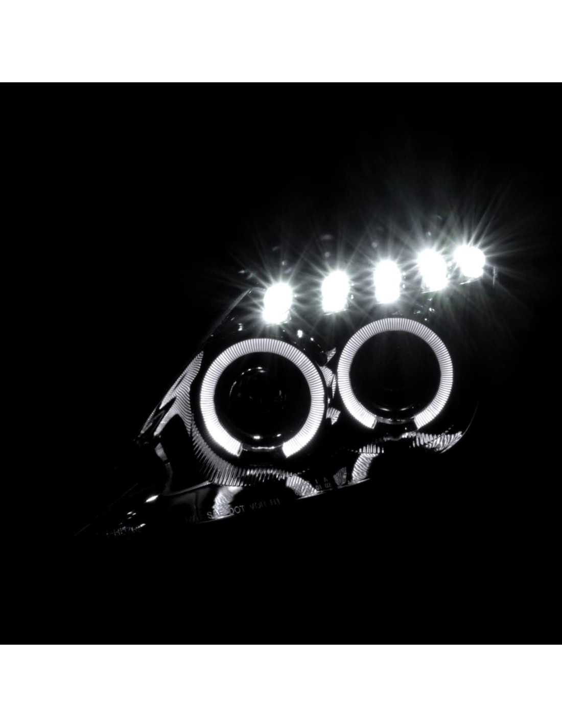 Estás mirando un conjunto completo que incluye faros proyectores de repuesto para el lado izquierdo y derecho. El diseño de los faros proyectores se originó en vehículos de carreras conducidos de noche. Nuestros faros vienen incluidos con bombillas halógenas y un arnés de cableado para una instalación rápida de enchufe y uso. Muchos de los faros proyectores de repuesto no usarán la misma bombilla OEM. La lente frontal es de plexiglás claro de alta calidad. Los halos o ojos de ángel requerirán cableado a una fuente de energía alternativa. Ya sea que estés buscando faros proyectores especiales o faros de reemplazo, encontrarás un aspecto elegante y personalizado por la noche, ya que las personas verán tus proyectores en sus espejos retrovisores.